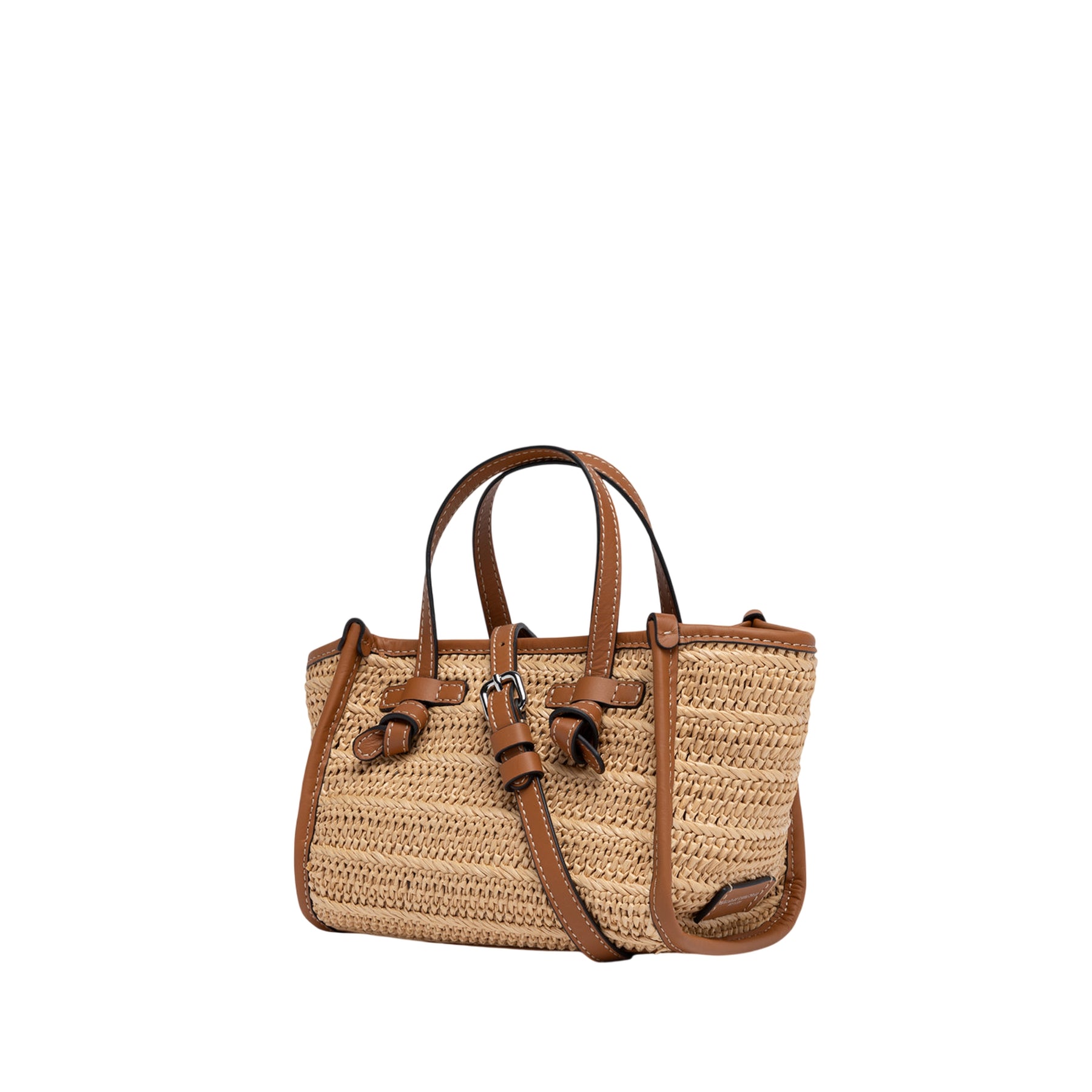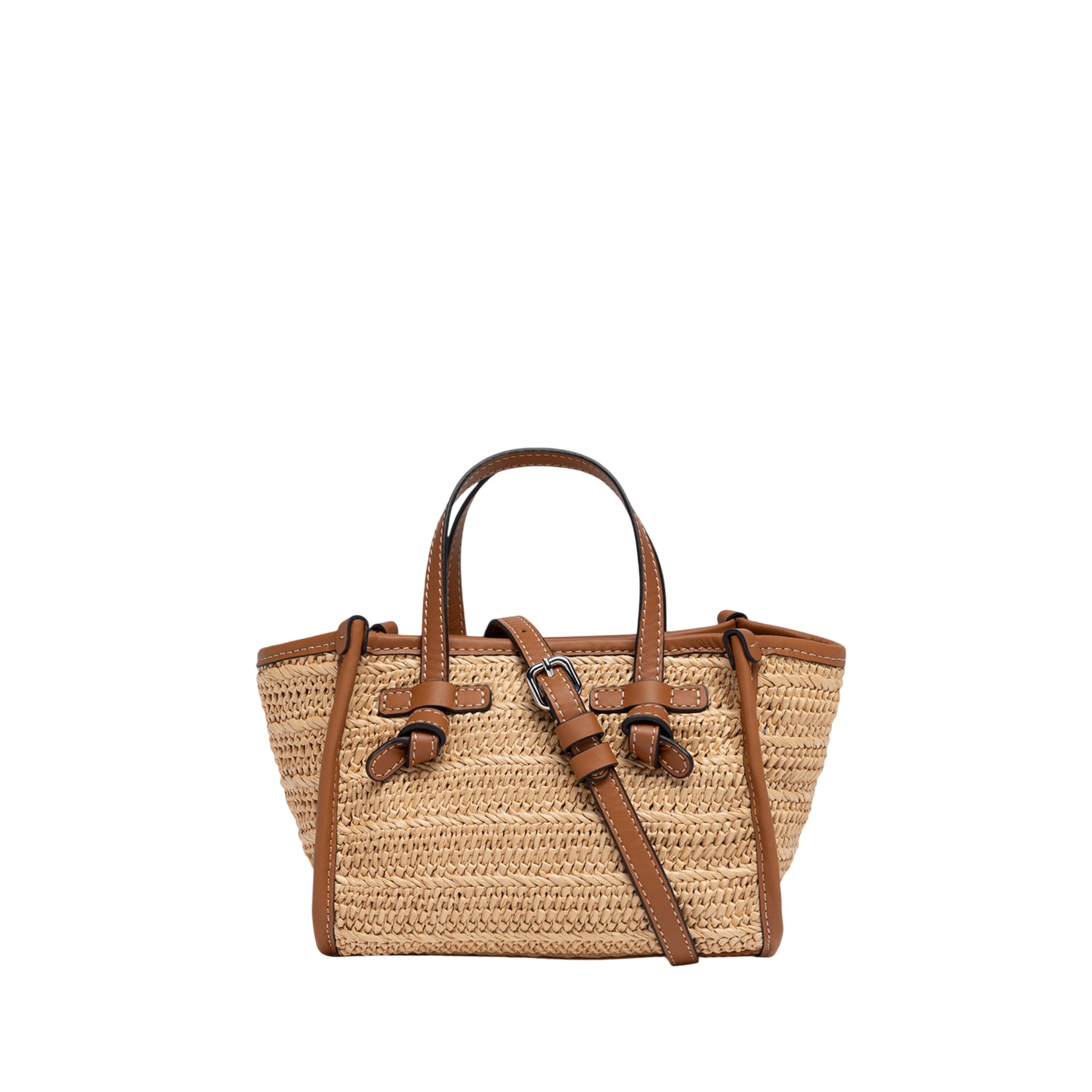 La mini Borsa a mano in paglia effetto stuoia marrone Gianni Chiarini unisce eleganza e funzionalità. Realizzata con materiali pregiati, presenta doppi manici in pelle e una tracolla rimovibile e regolabile per adattarsi a ogni occasione. La chiusura con zip assicura praticità e protezione dei tuoi effetti personali, mentre l'etichetta in pelle logata aggiunge un tocco di raffinatezza distintiva. Perfetta per le tue giornate estive, trasforma qualsiasi outfit in uno stile consapevole e sofisticato.