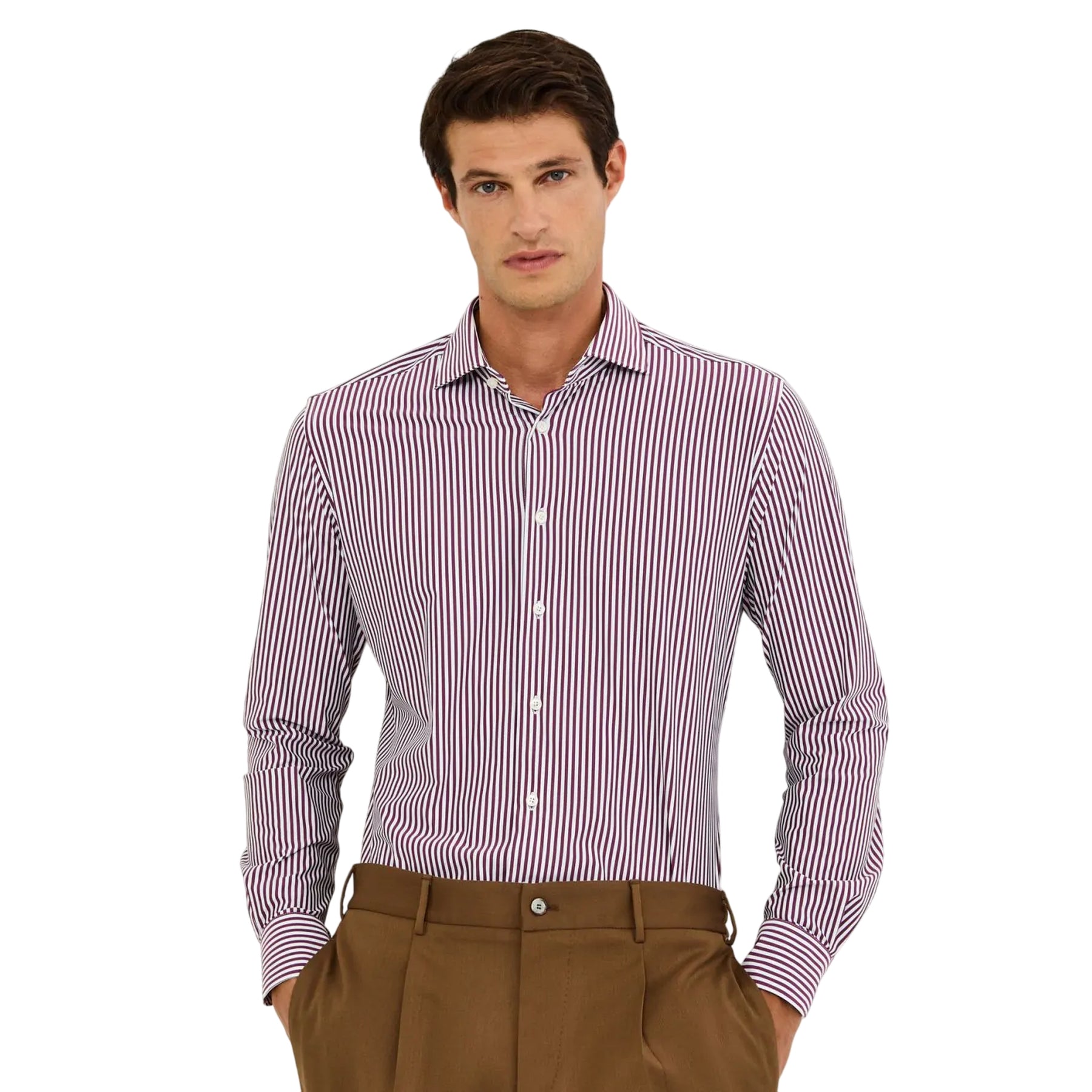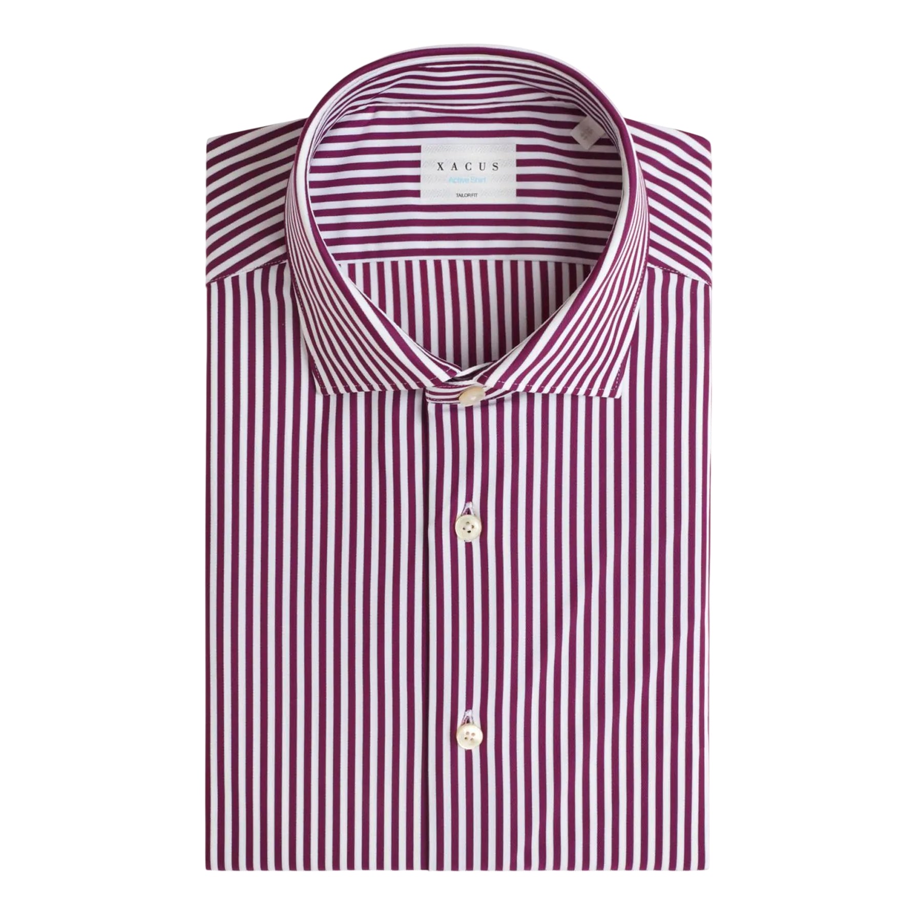Camicia Uomo firmata Xacus realizzata in puro cotone di qualità. Presenta un colletto alla francese ed un elegante motivo a righe verticali. Una camicia, con vestibilità tailor fit, senza tempo!