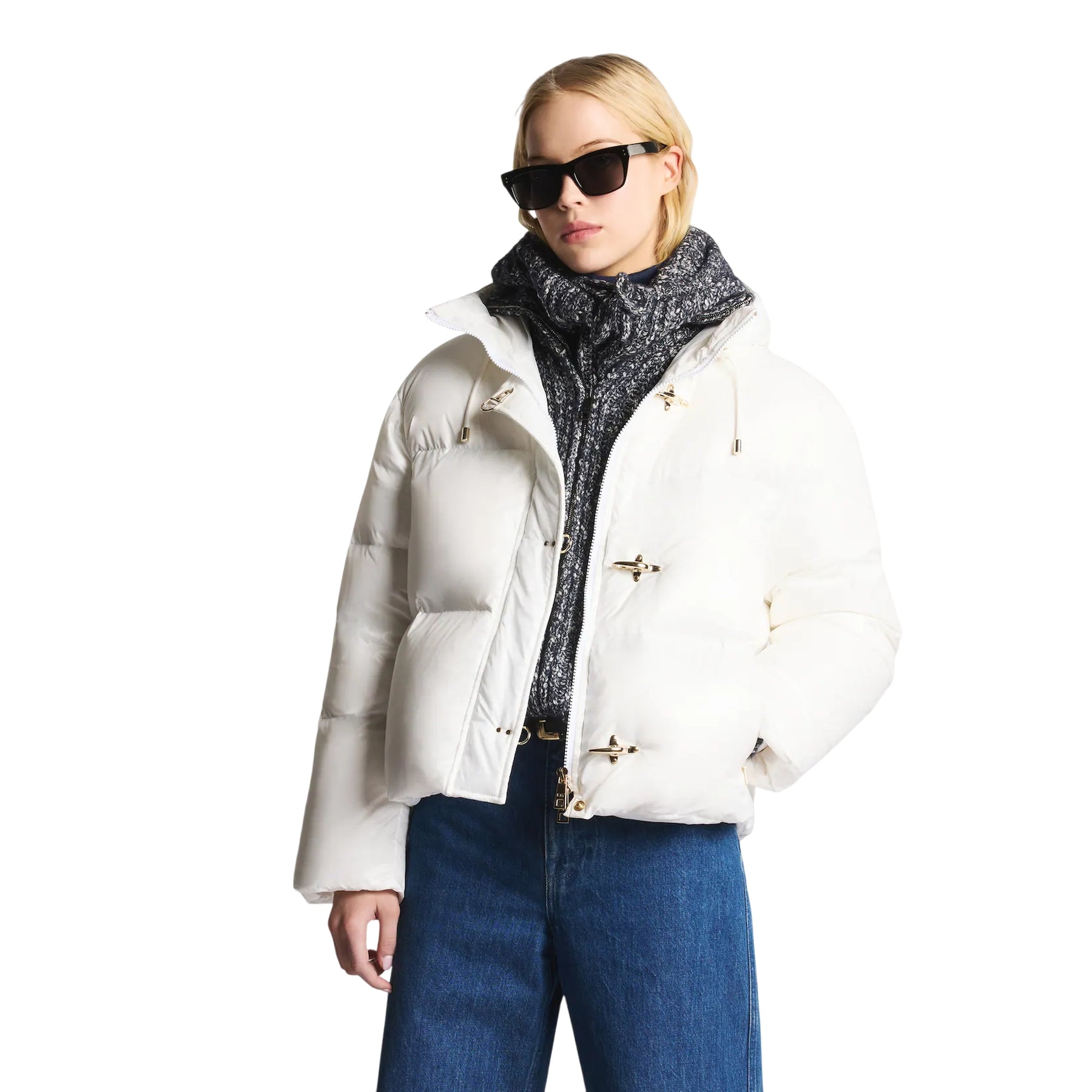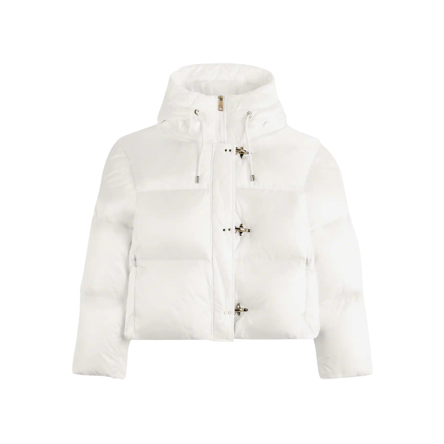 Scopri il Piumino Donna corto firmato Fay! Realizzato in nylon a tinta unita, presenta impunture orizzontali, un comodo cappuccio e una chiusura con iconici ganci del brand. Un piumino senza tempo c!