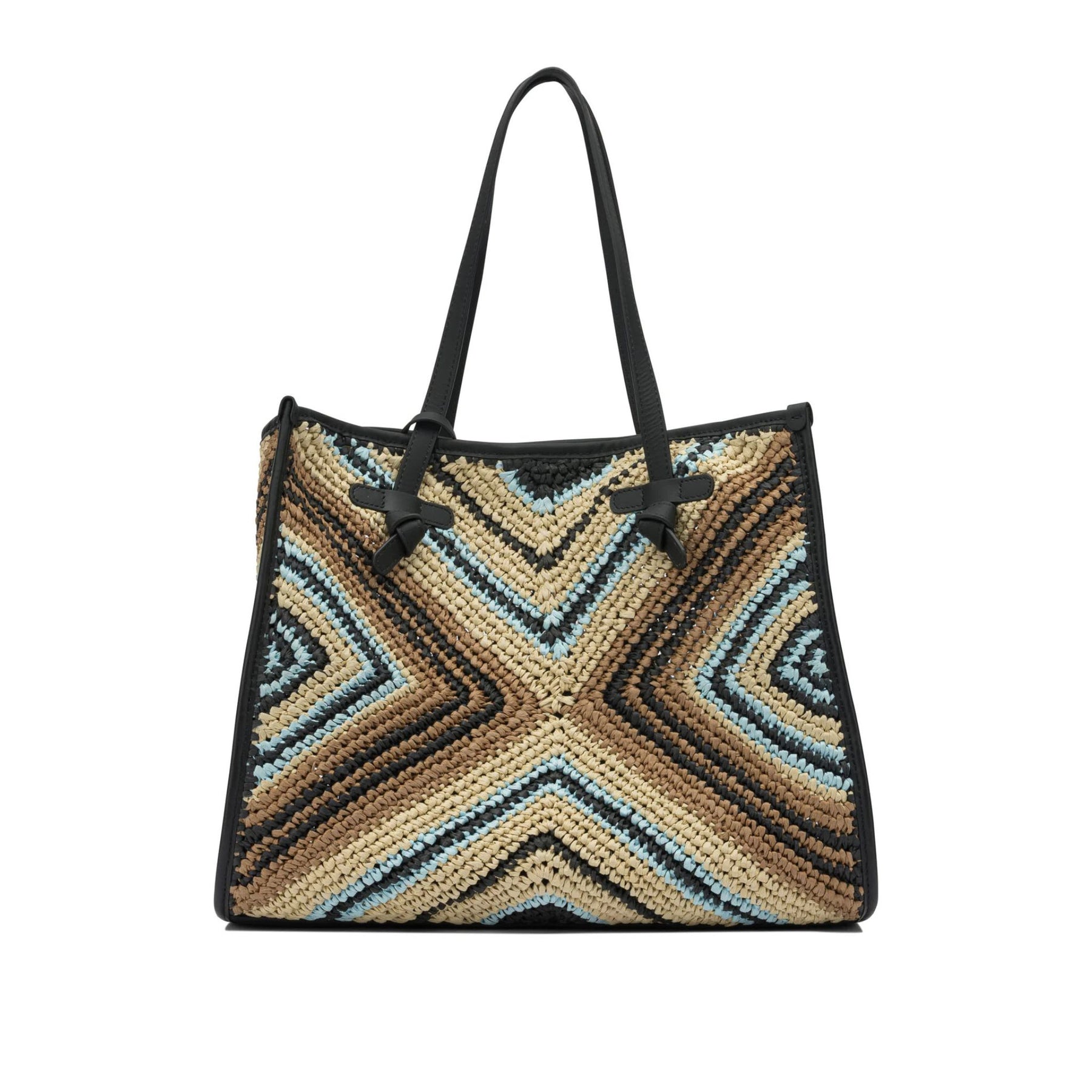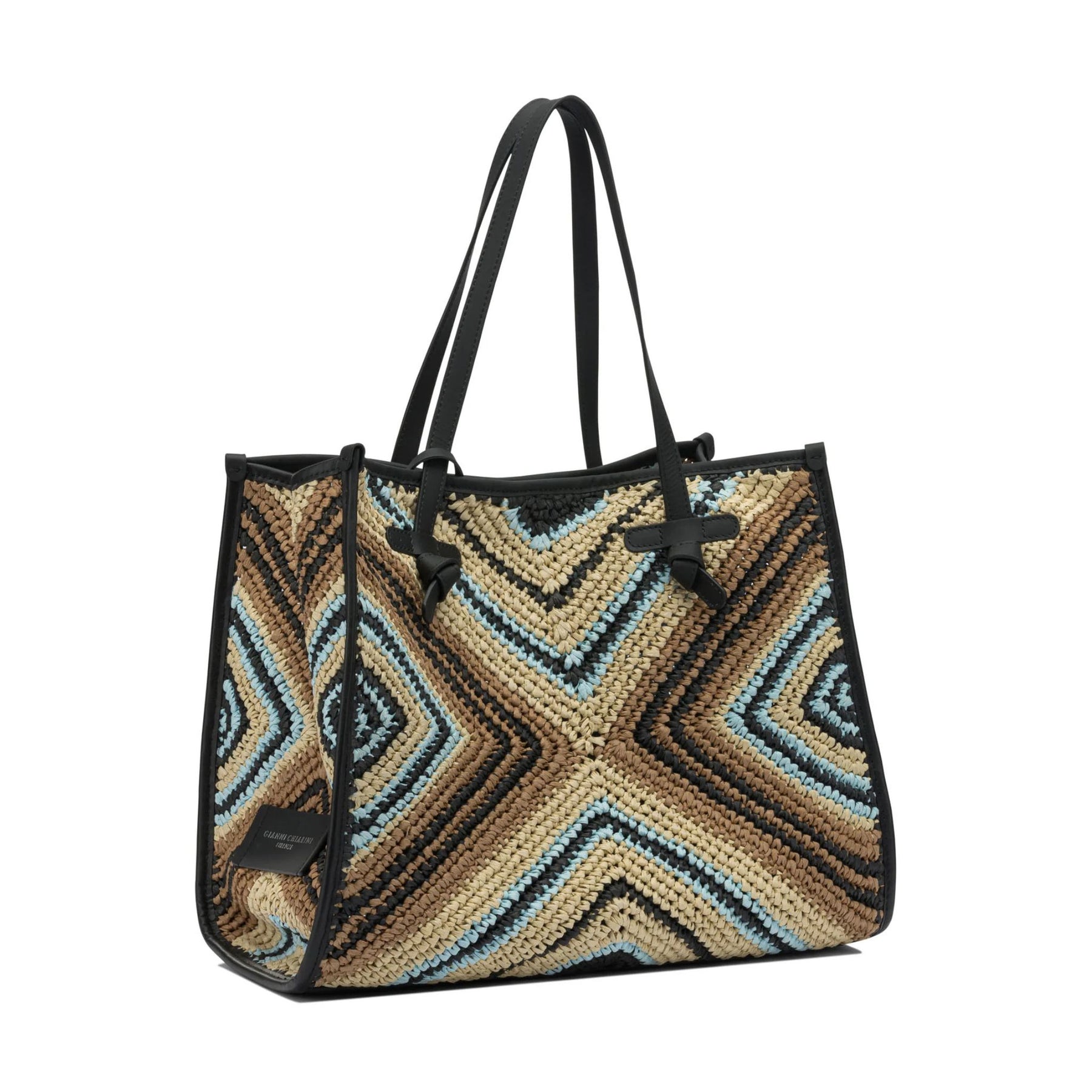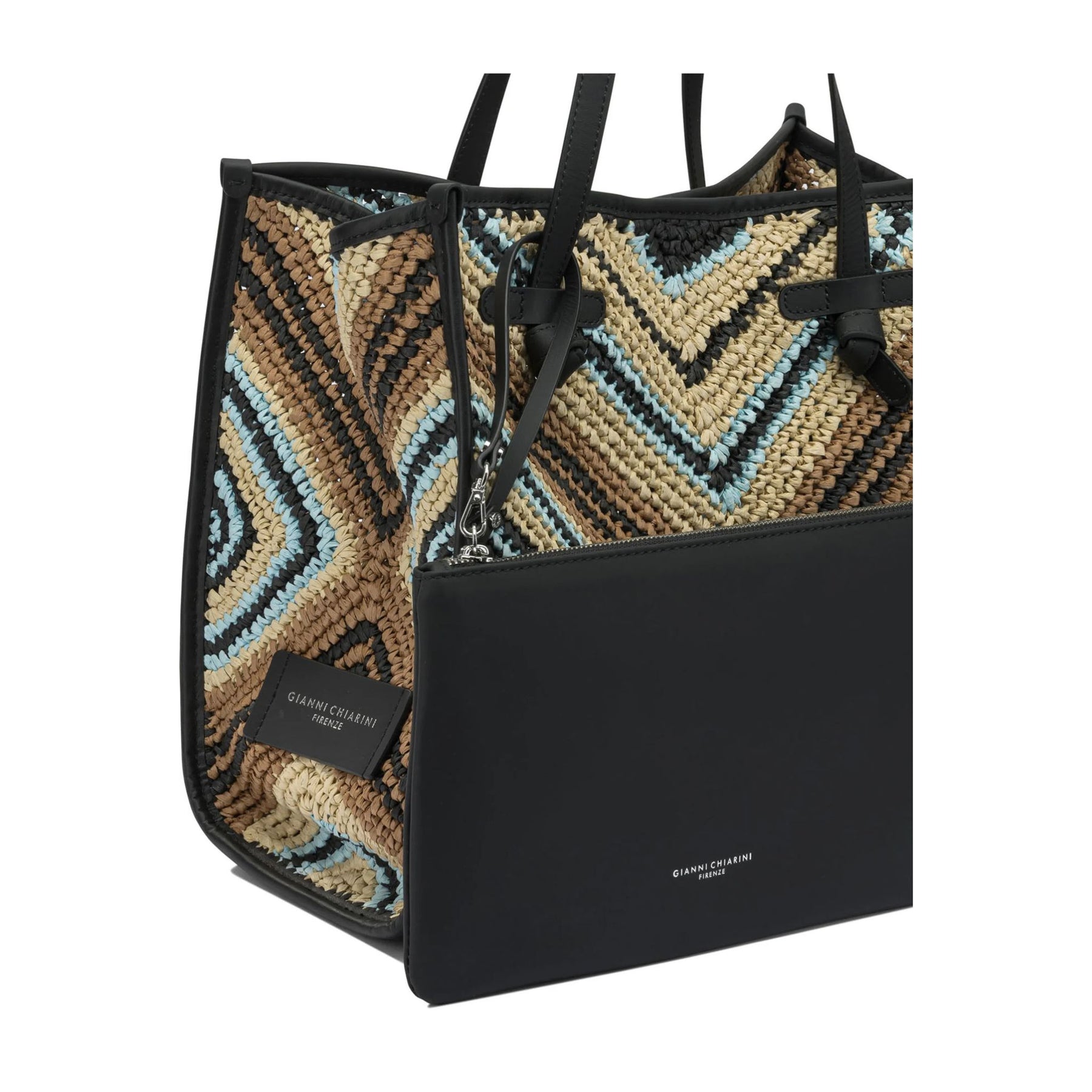 La Borsa Donna Shopping in paglia firmata Gianni Chiarini! Realizzata con una fantasia geometrica all over, presenta una pochette interna rimovibile ed una chiusura con bottone magnetico. Una borsa capiente e trendy, senza tempo!