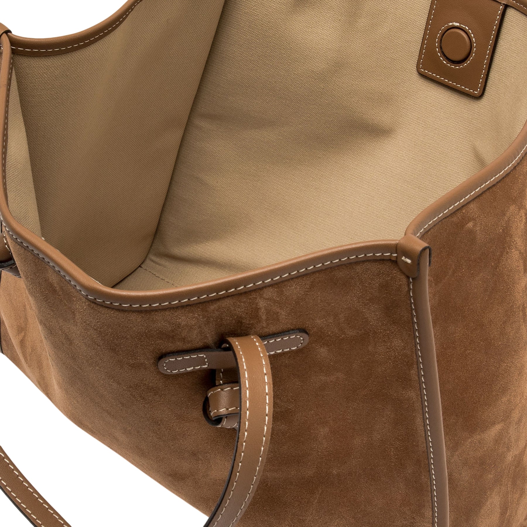 Scopri la Borsa Shopping Miss Marcella di Gianni Chiarini, un capolavoro di eleganza fiorentina che cattura l'essenza dello stile italiano contemporaneo. Questa borsa affascina con la sua texture in pregiata pelle scamosciata marrone, sapientemente abbinata a dettagli in pelle liscia che creano un gioco di contrasti raffinato e sofisticato. I manici in pelle robusta garantiscono durabilità e comfort, mentre la chiusura magnetica assicura praticità senza compromessi. La fodera interna e la pochette coordinata trasformano ogni momento in un'occasione di stile, offrendo spazi intelligenti per organizzare i tuoi essenziali. Un accessorio che fonde artigianalità e design moderno, ideale per chi desidera un compagno elegante che rispecchia il proprio gusto raffinato.