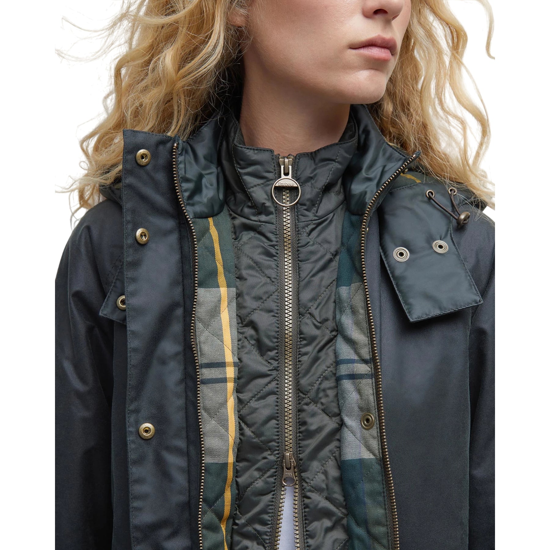 Il Giubbotto cerato Cannich di Barbour unisce stile e funzionalità con un design parka a coda di pesce di media lunghezza. Il cappuccio rimovibile e il corpo trapuntato foderato in tartan assicurano calore e comfort ottimali, perfetti per affrontare i giorni più freddi con eleganza. Il logo discreto sulla tasca sinistra aggiunge un tocco di raffinatezza a questo capo versatile, ideale per chi cerca protezione senza rinunciare alla moda.
