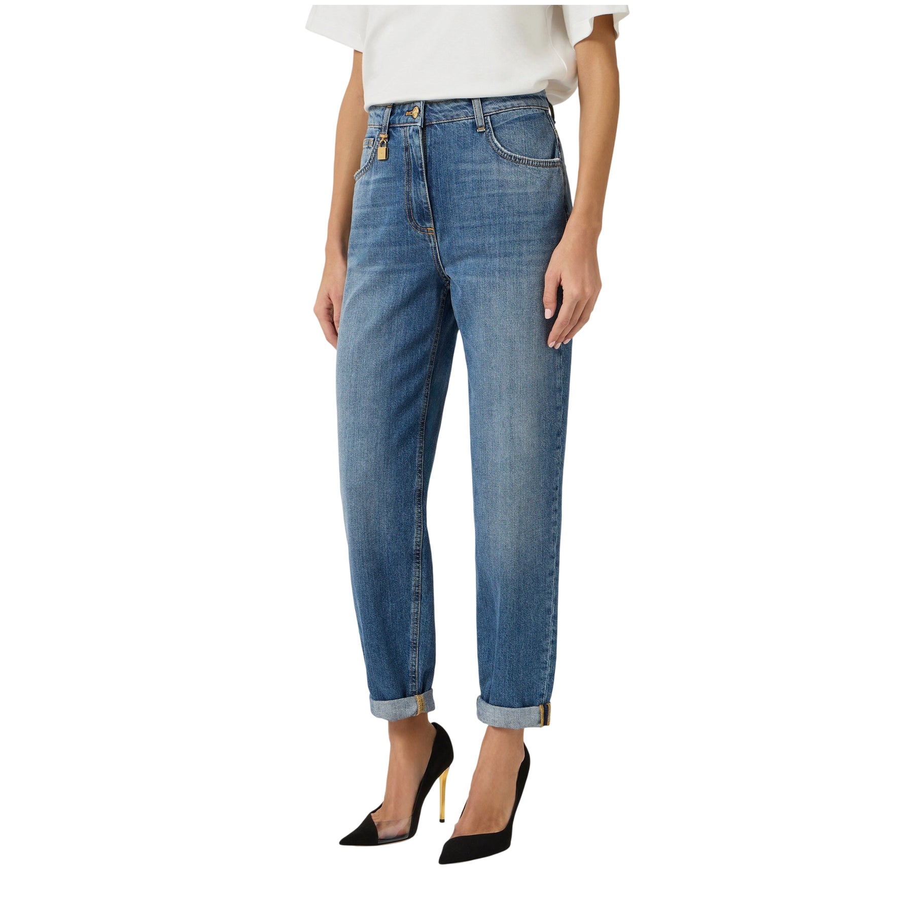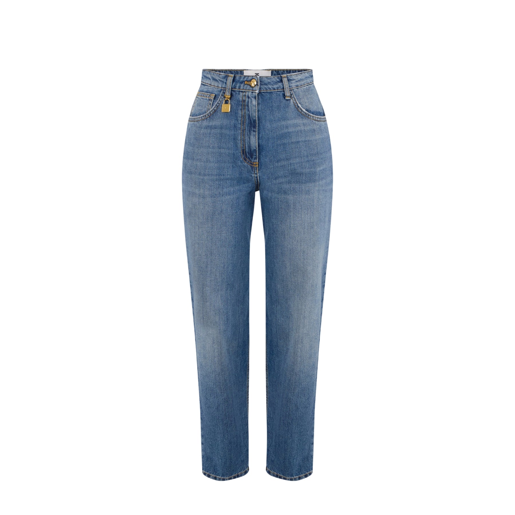 Scopri i Jeans donna con lucchetto gioiello di Elisabetta Franchi, un modello dal carattere ricercato che unisce stile e personalità. La vita regolare e la gamba a ovetto donano una silhouette moderna e confortevole, perfetta per look casual ma curati. Il design cinque tasche è completato da tasche anteriori e posteriori funzionali, mentre la chiusura con bottone dorato aggiunge un dettaglio luminoso. A rendere il capo unico è il lucchetto gioiello pendente, un elemento decorativo che impreziosisce il denim con un tocco elegante e distintivo.