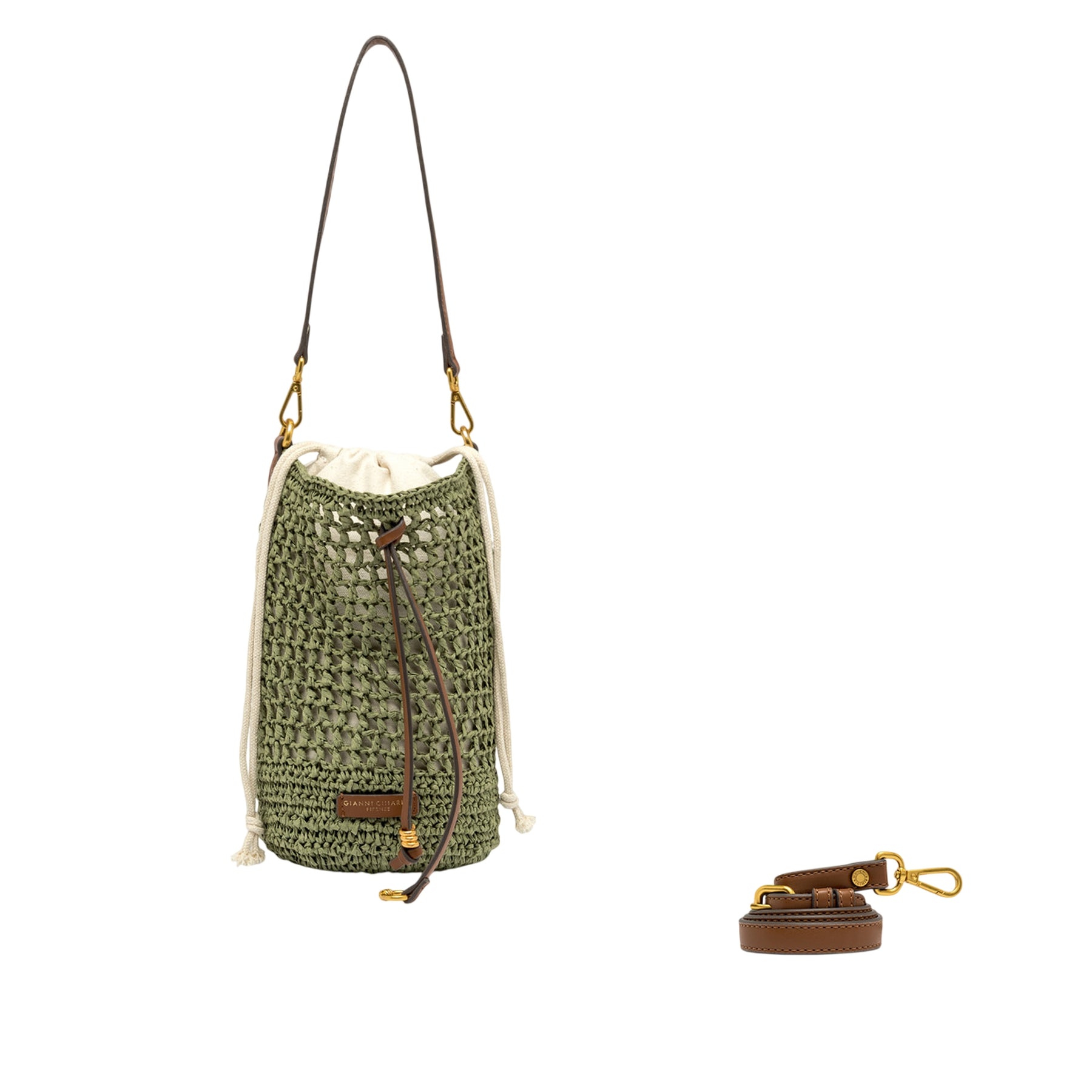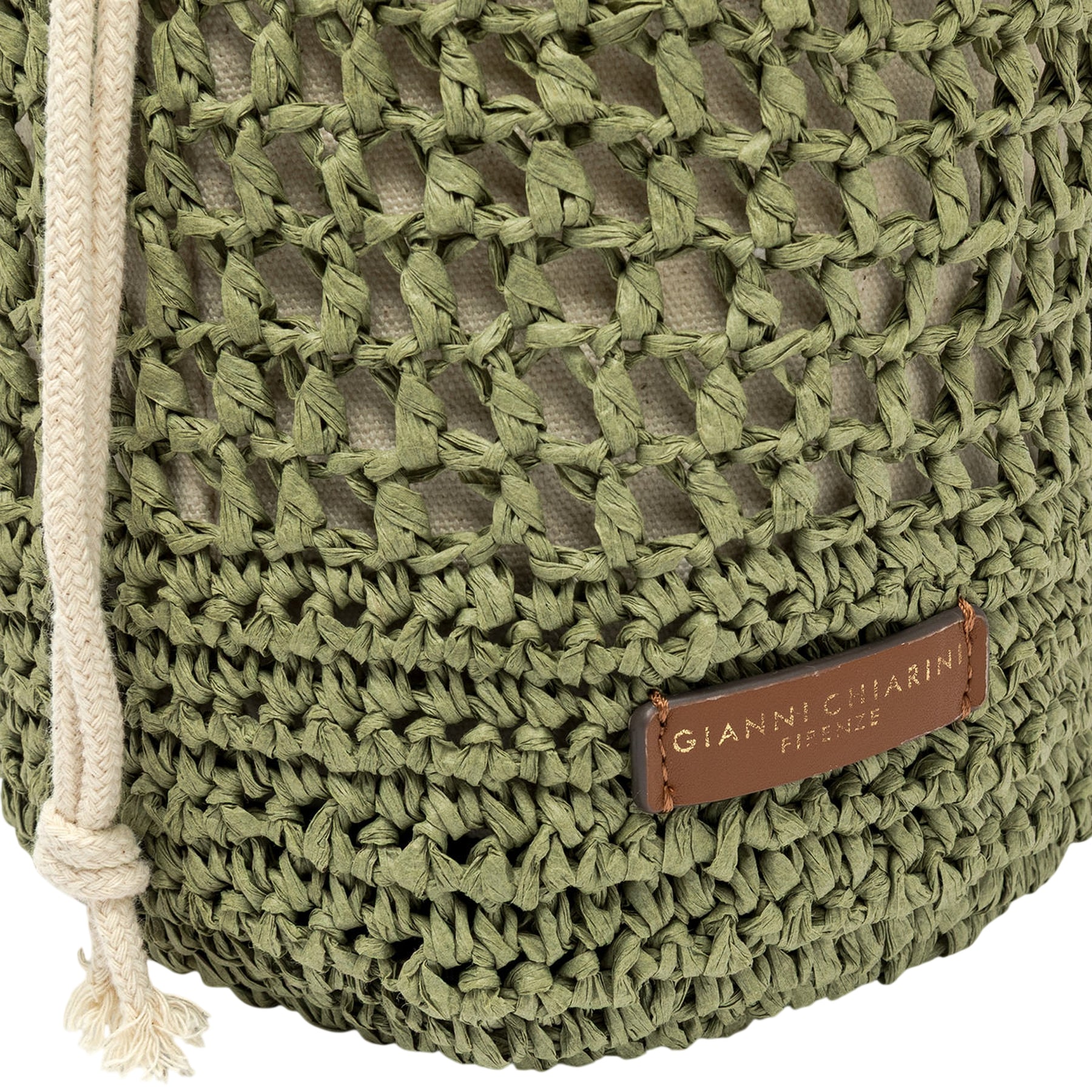 Preparati alle giornate calde con stile con questa Borsa a secchiello Donna firmata Gianni Chiarini. Il suo design è reso unico dalla lavorazione crochet della paglia che crea un effetto see-through originale. Il charm in pelle che richiama la tracolla aggiunge un tocco distintivo.