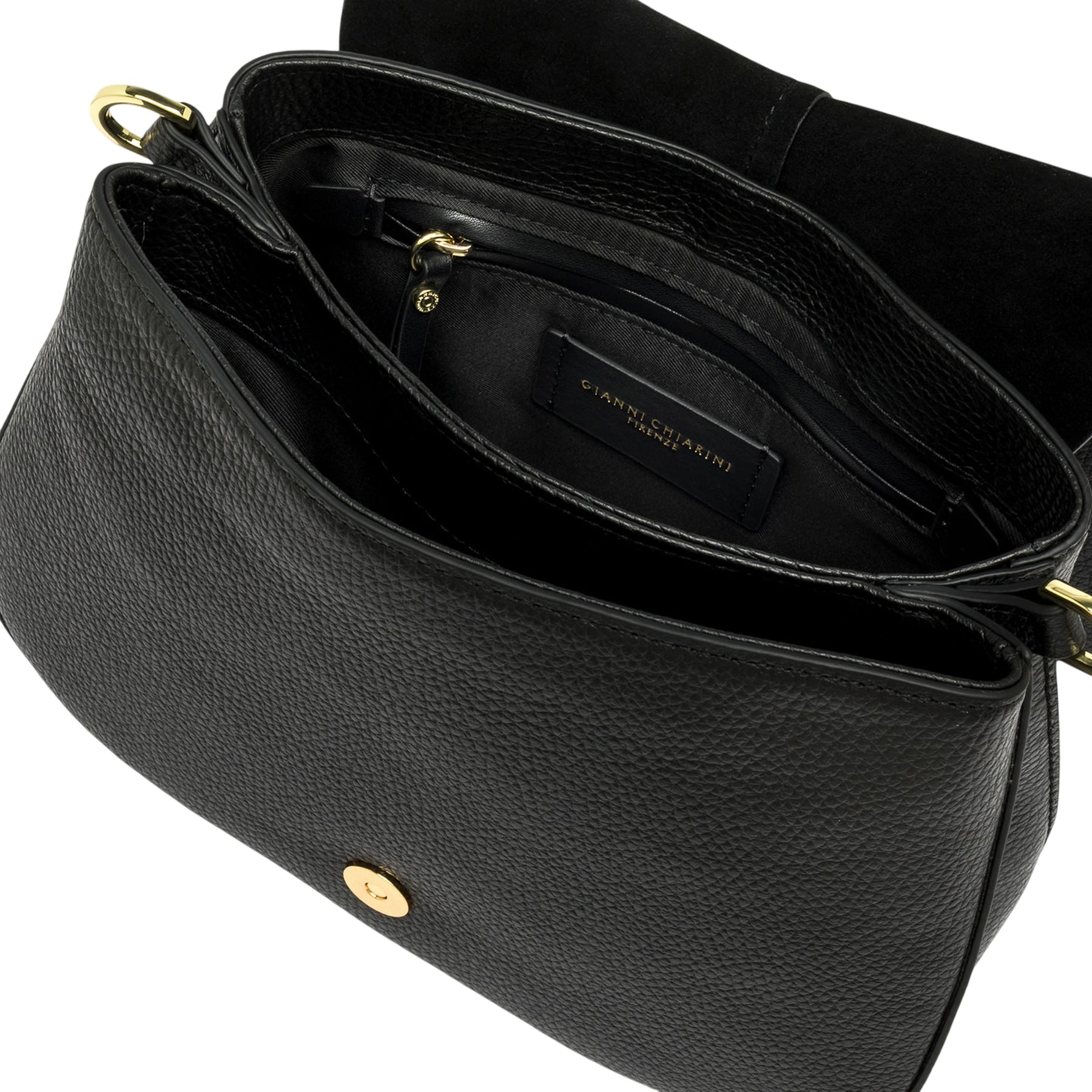 La Borsa donna Helena a tracolla nera di Gianni Chiarini Firenze è un’icona di stile dal design strutturato e contemporaneo. Realizzata in pelle martellata, unisce eleganza e funzionalità grazie al doppio scomparto interno e alla pratica tasca a scomparsa sul retro. La chiusura con patta e bottone magnetico assicura praticità, mentre la tracolla in tessuto regolabile e rimovibile permette una doppia portabilità, adattandosi con facilità a ogni occasione.