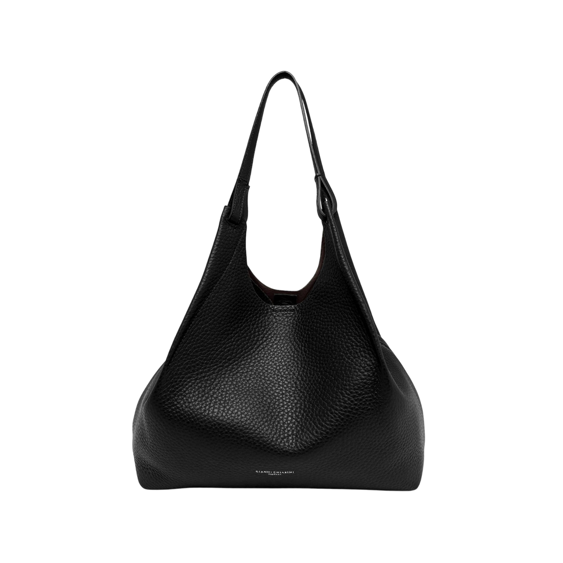 La Borsa a spalla DUA di Gianni Chiarini in pelle nera elegante con dettagli martellati unisce eleganza e praticità. Dotata di un ampio monoscomparto con chiusura magnetica, offre spazio e semplicità d’uso. I doppi manici assicurano una comoda portabilità a spalla, mentre la pochette interna aggiunge versatilità e raffinatezza, perfetta per chi desidera un accessorio funzionale e di classe in ogni situazione.