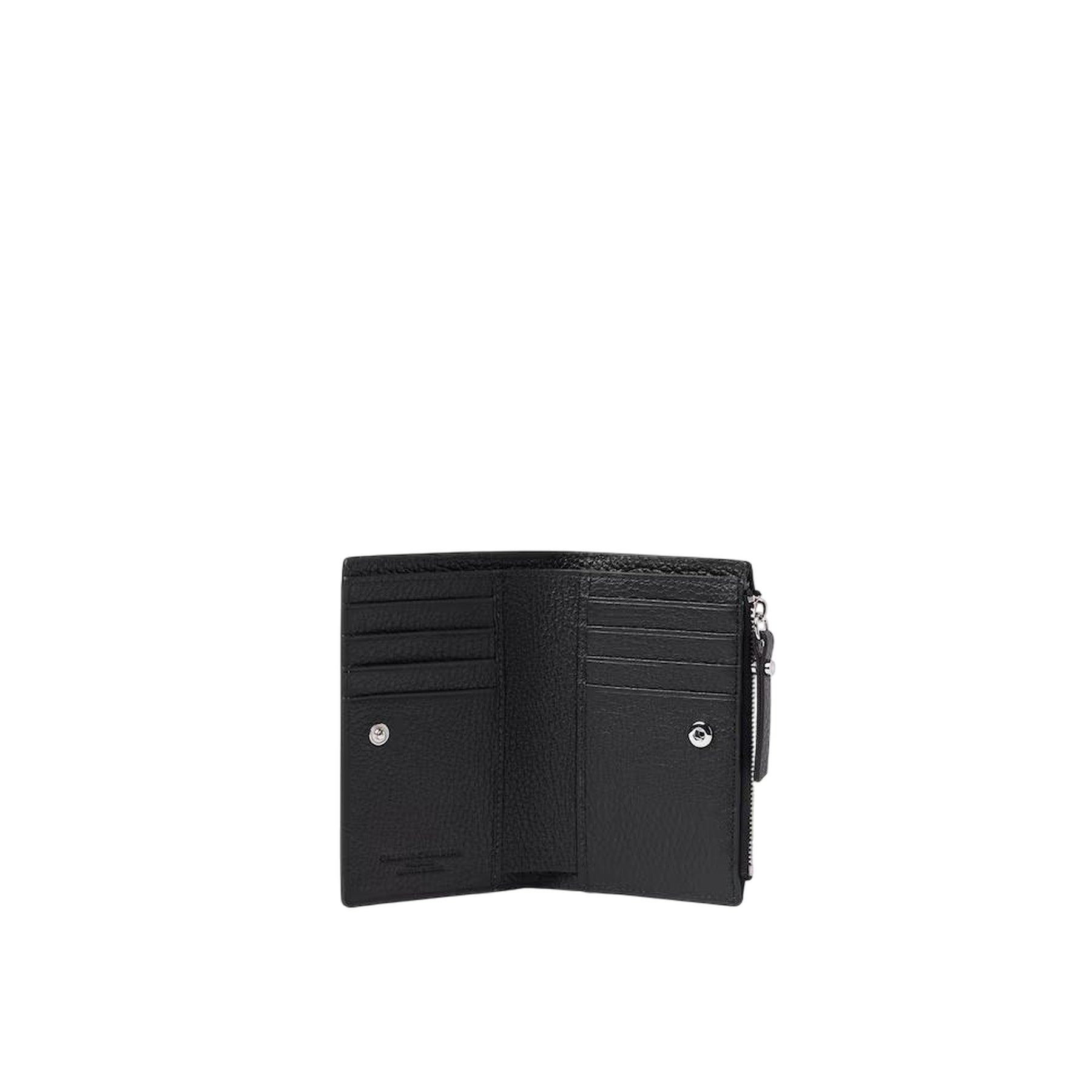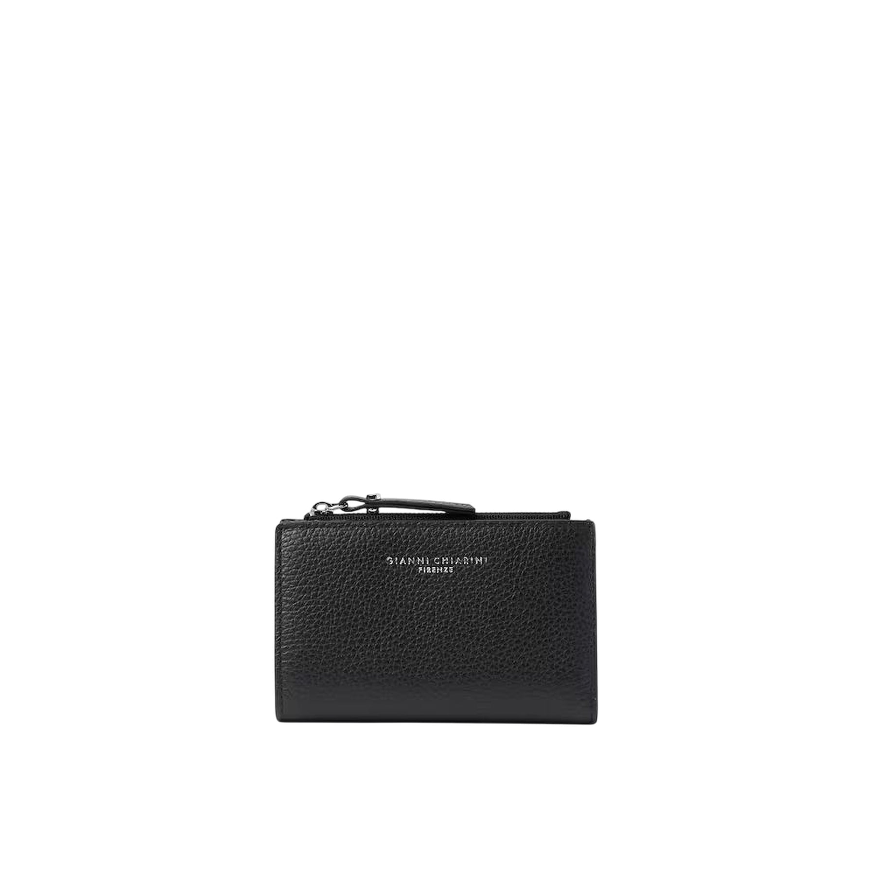 Questo Portafoglio da donna in pelle martellata nera di Gianni Chiarini combina eleganza e praticità. La chiusura a bottone a pressione garantisce sicurezza, mentre le tasche piatte e la tasca con zip per monete offrono spazio organizzato. Il design sobrio, arricchito da un logo discreto, rende questo accessorio ideale per un uso quotidiano raffinato, resistente e comodo.