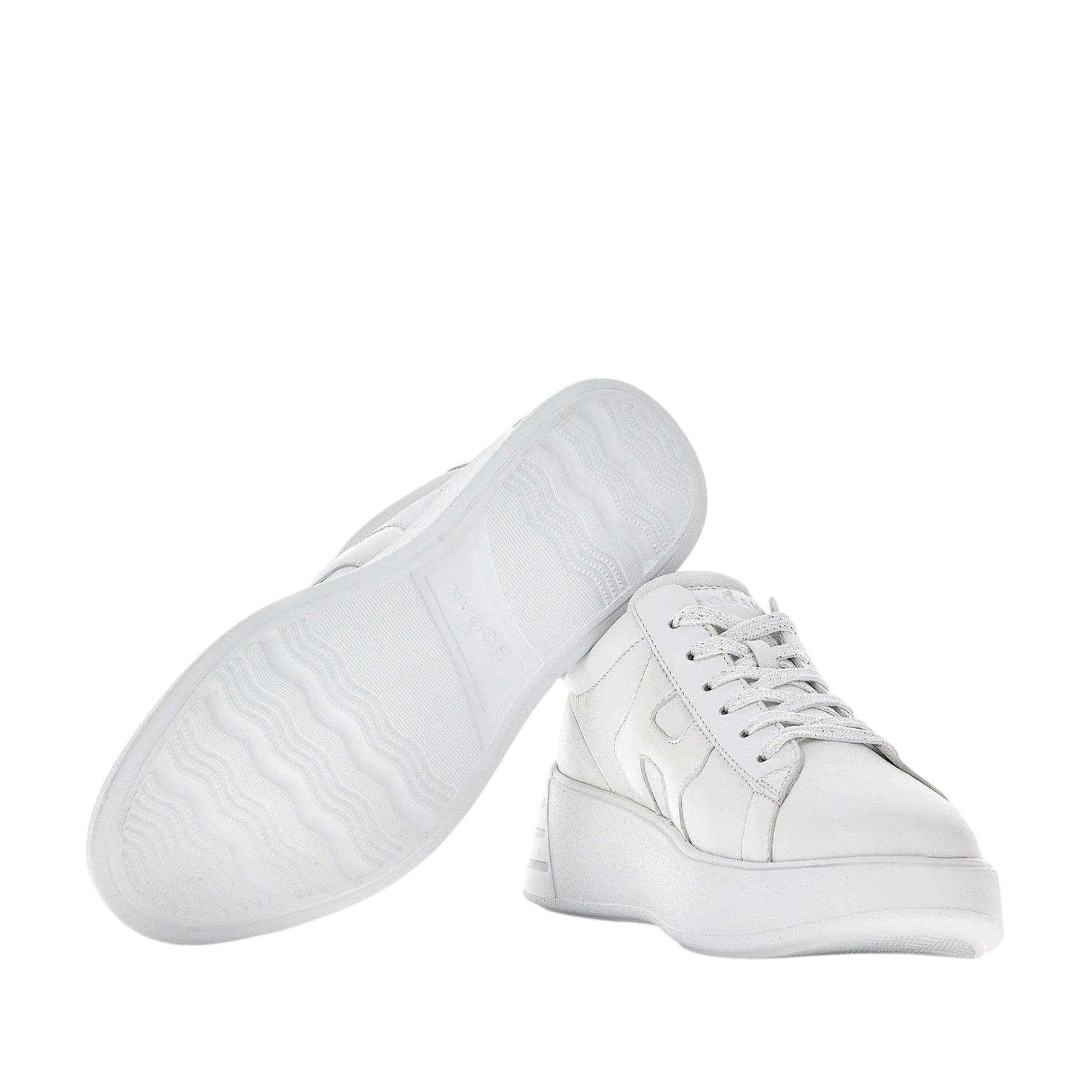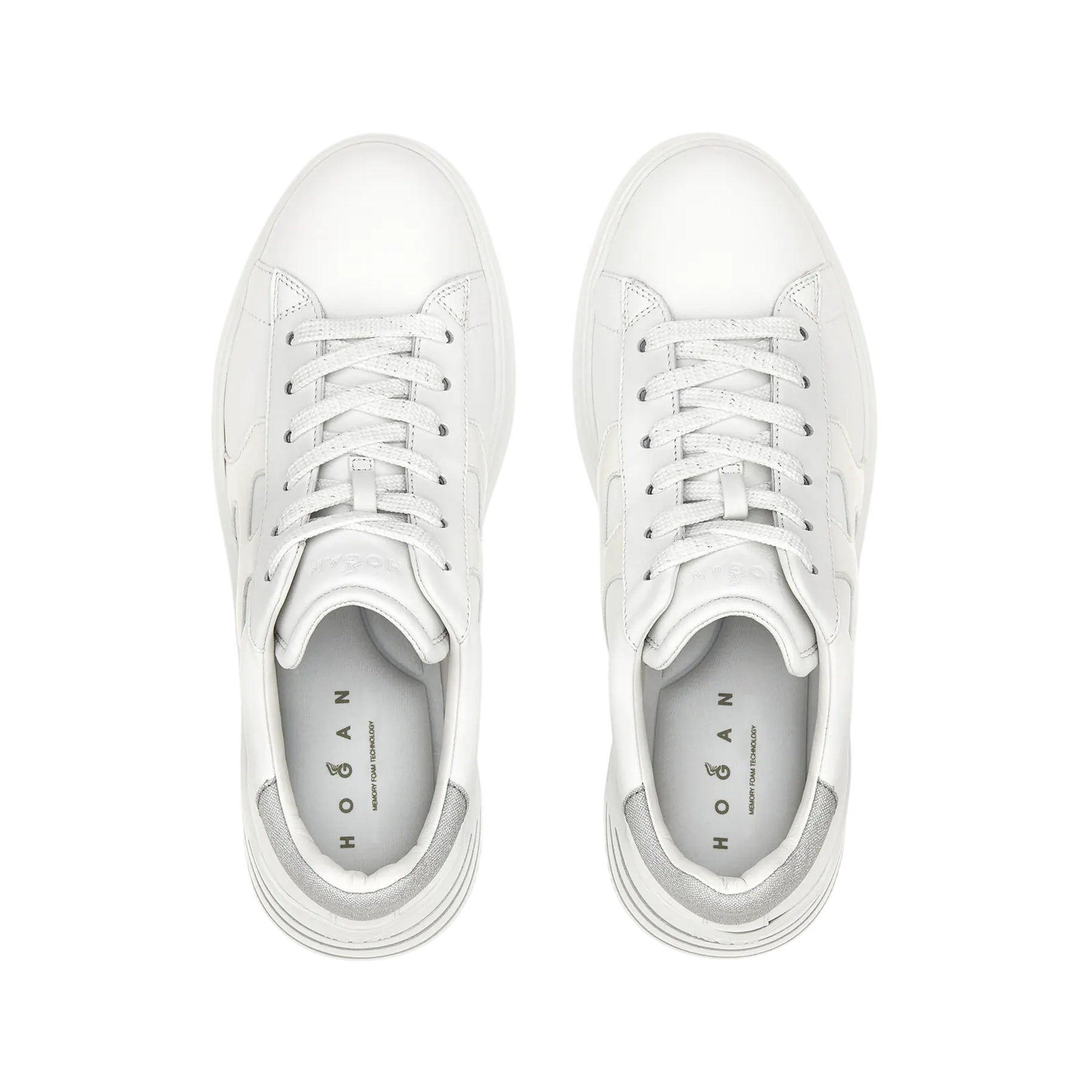 Le sneakers Hogan Rebel da donna bianche Made in Italy di Hogan uniscono comfort e stile contemporaneo con un’anima iconica. Realizzate in nappa, si distinguono per l’H laterale ondulata in vernice morbida e i dettagli in tessuto shiny, che conferiscono un tocco elegante e luminoso, perfetto per look casual chic e versatili. La suola extralight con scanalature sul retro e la soletta in memory foam da 5 mm assicurano ammortizzazione e calzata confortevole per tutta la giornata. Completa il modello la custodia in tessuto, il paio di lacci aggiuntivi e le indicazioni per cura e mantenimento, espressione dell’attenzione artigianale tipica di Hogan.