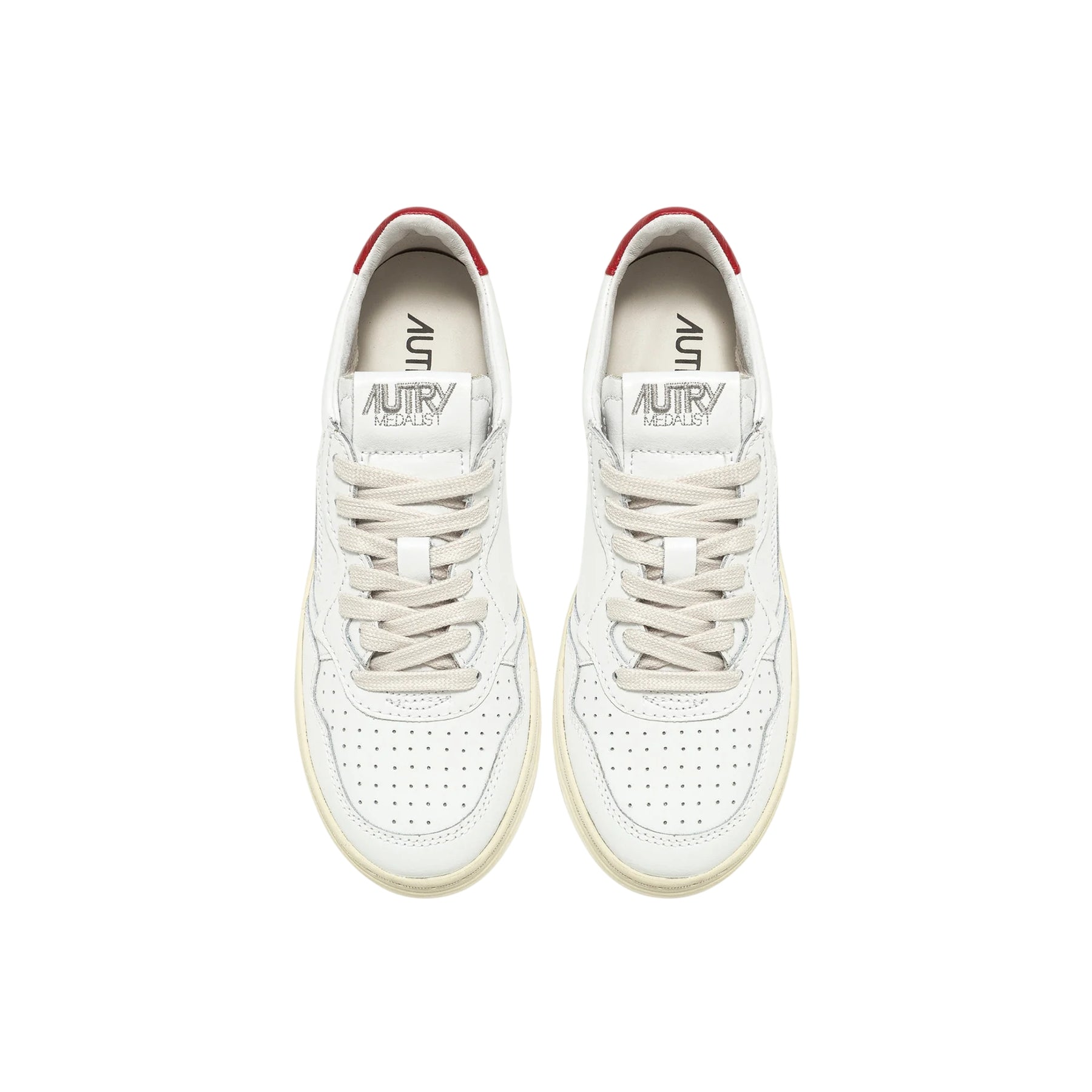 Aggiungi un tocco di stile ai tuoi outfit quotidiani con le Sneakers Uomo Medalist Low Bianco/Rosso firmate Autry. Realizzate in pelle morbida e leggera, offrono il massimo comfort e traspirabilità grazie al dettaglio in microfori sulla punta. Ispirate al tennis degli anni '80, queste scarpe dinamiche si adattano a ogni look e sono personalizzate con il logo Autry sul tallone.