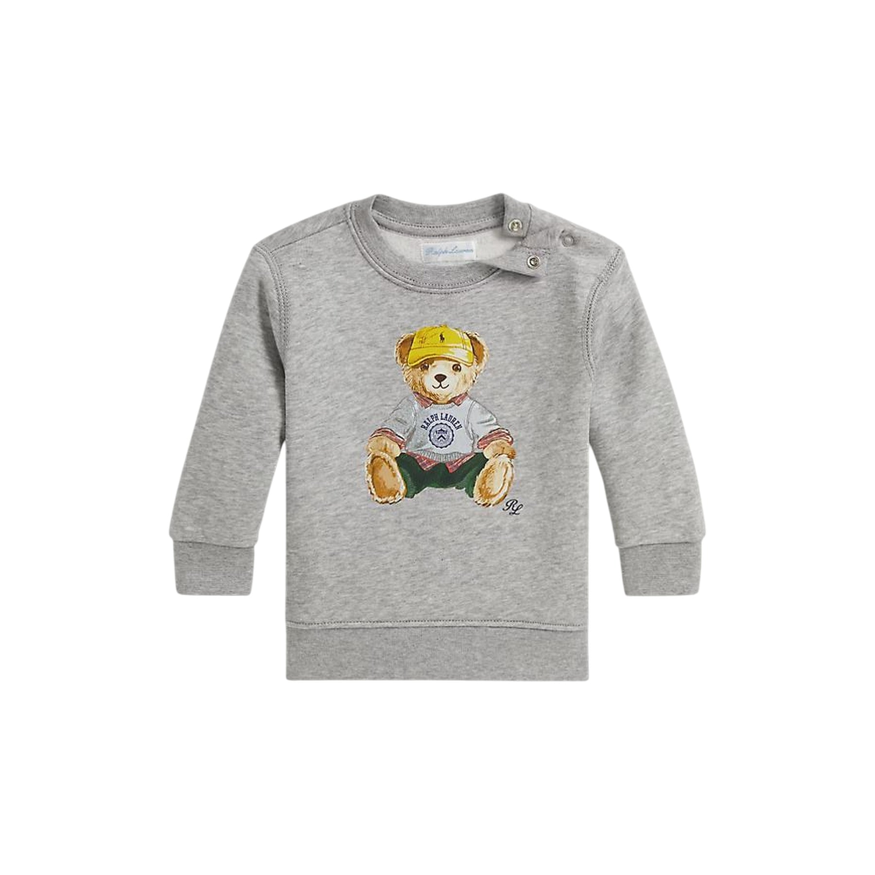 Questa Felpa neonato Polo Bear in grigio di Ralph Lauren unisce comfort e stile con un morbido girocollo e una chiusura pratica con due automatici sulla spalla sinistra, perfetti per facilitare la vestizione. Le maniche lunghe e i polsini a coste garantiscono calore e vestibilità, mentre l’orlo a coste assicura una forma sempre aderente. Il dettaglio distintivo è il Polo Bear con scritta RL stampati sul davanti, che dona un tocco raffinato e riconoscibile ai più piccoli. Ideale per ogni occasione, assicura comodità e un look elegante.