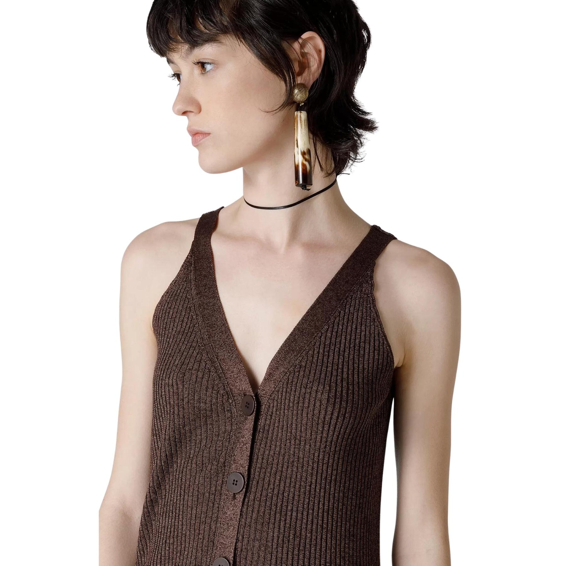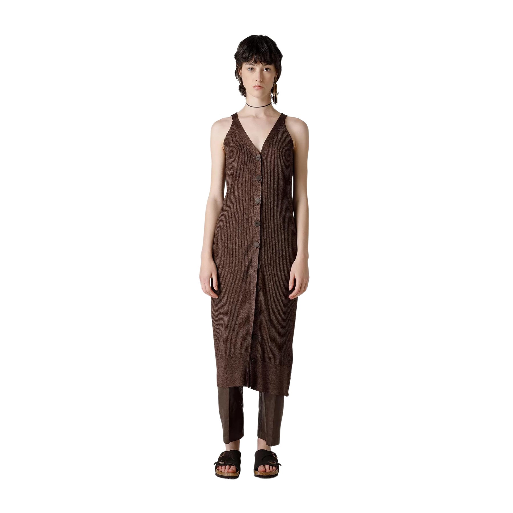 Abito da donna firmato Seventy dal design versatile, che può essere utilizzato come uno chemisier o sovrapposto a dei pantaloni per un look moderno. L'abito è stato realizzato in tessuto di viscosa e lurex e presenta una lavorazione a coste all-over. Il fit dritto e le spalle scoperte, con una chiusura con maxi bottoni, completano il look.