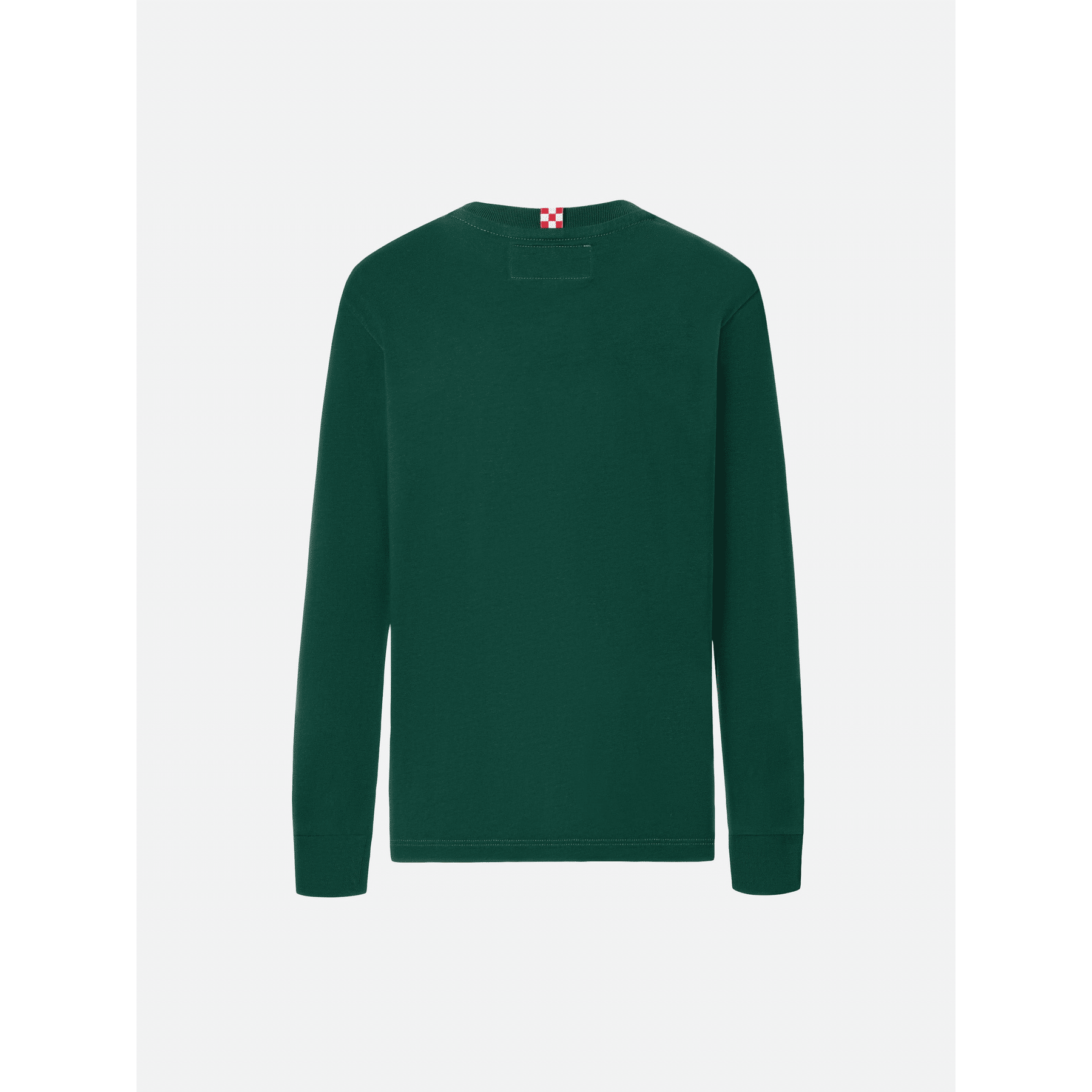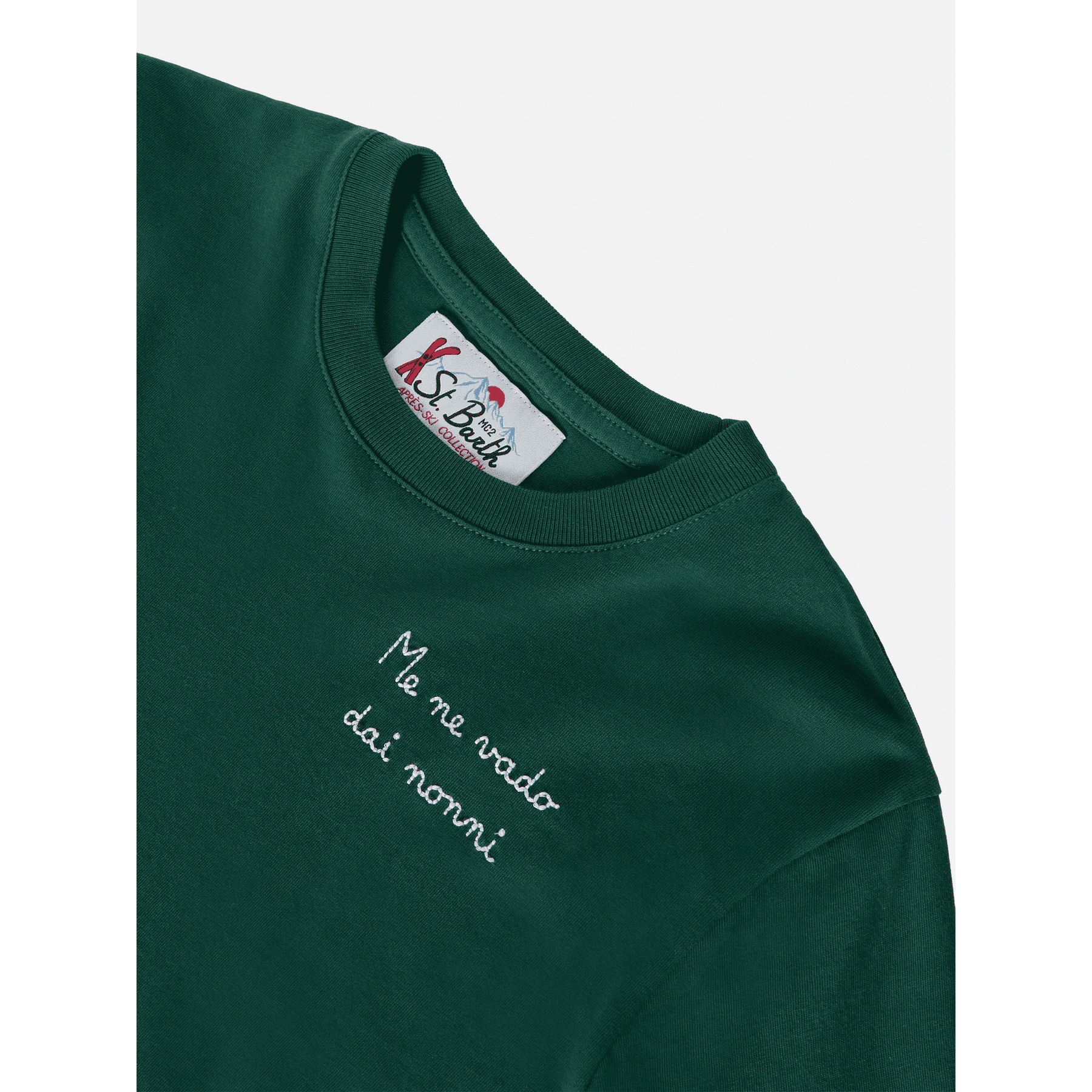 T-shirt Luton in cotone verde a maniche lunghe con ricamo Me ne vado dai nonni