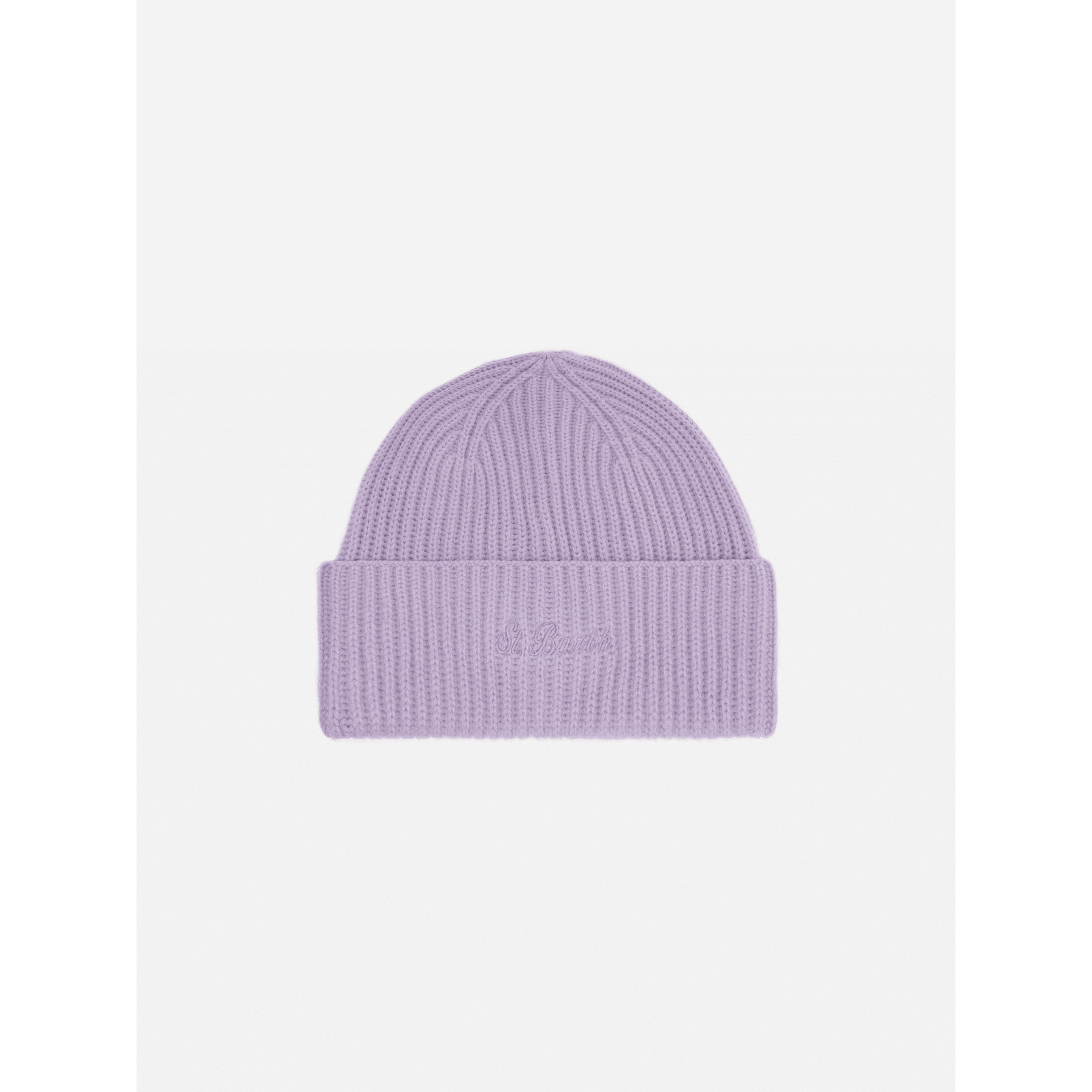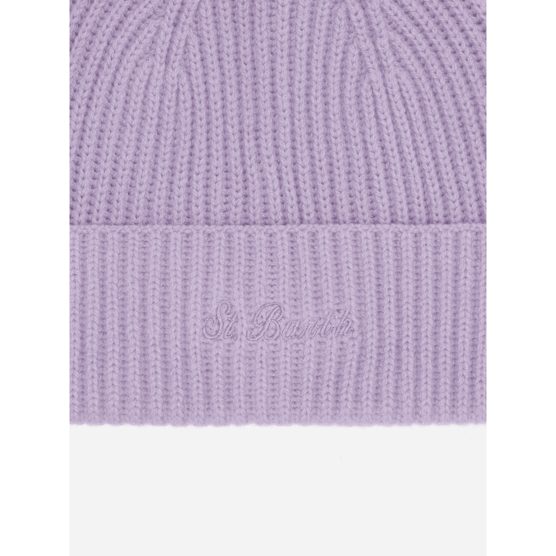 Berretto Moss in maglia lilla a coste con ricamo St. Barth