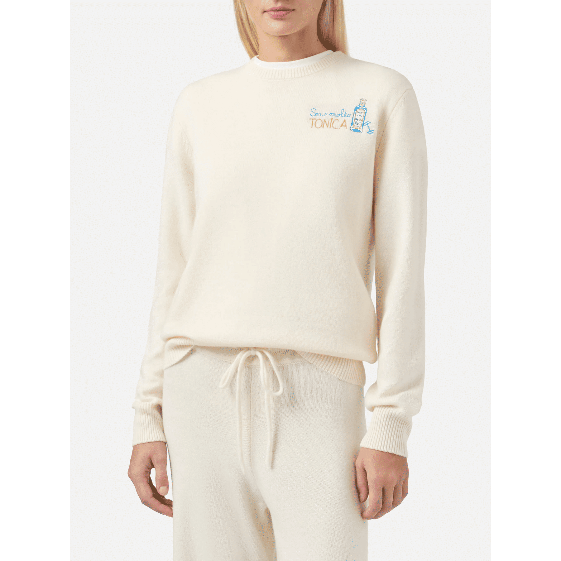 Maglione New Queen in misto cashmere bianco con ricamo Sono molto tonica