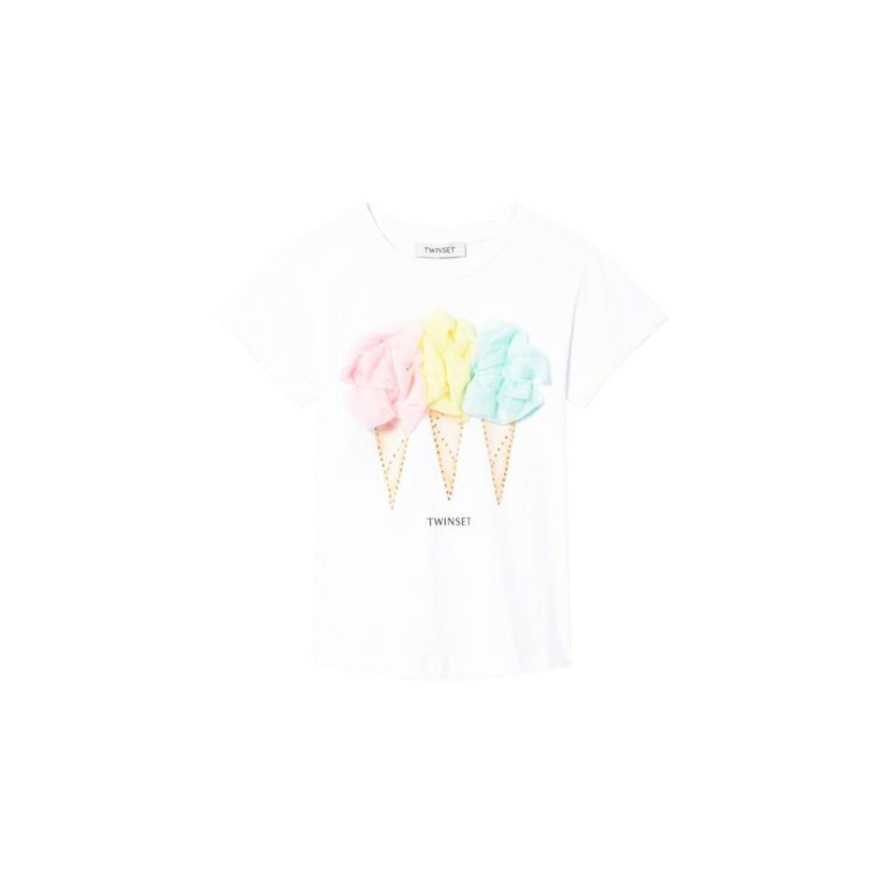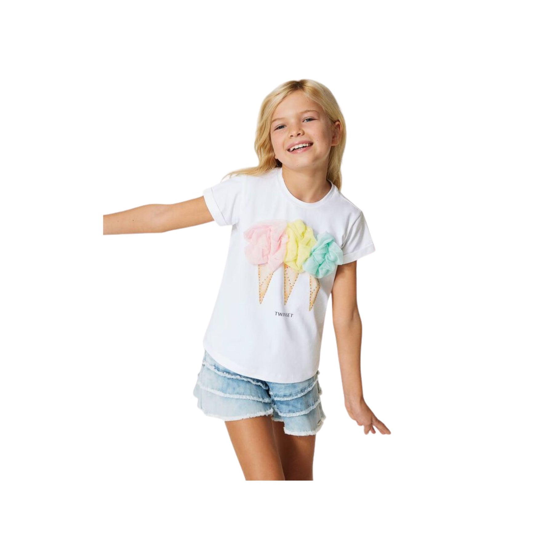 T-shirt da Bambina realizzata interamente in cotone elasticizzato per donarti il massimo del comfort. Una maglietta a maniche corte dallo stile casual, caratterizzata da stampa sul petto con tulle applicate, indossala con degli shorts in tinta unita per le vostre passeggiate in famiglia.