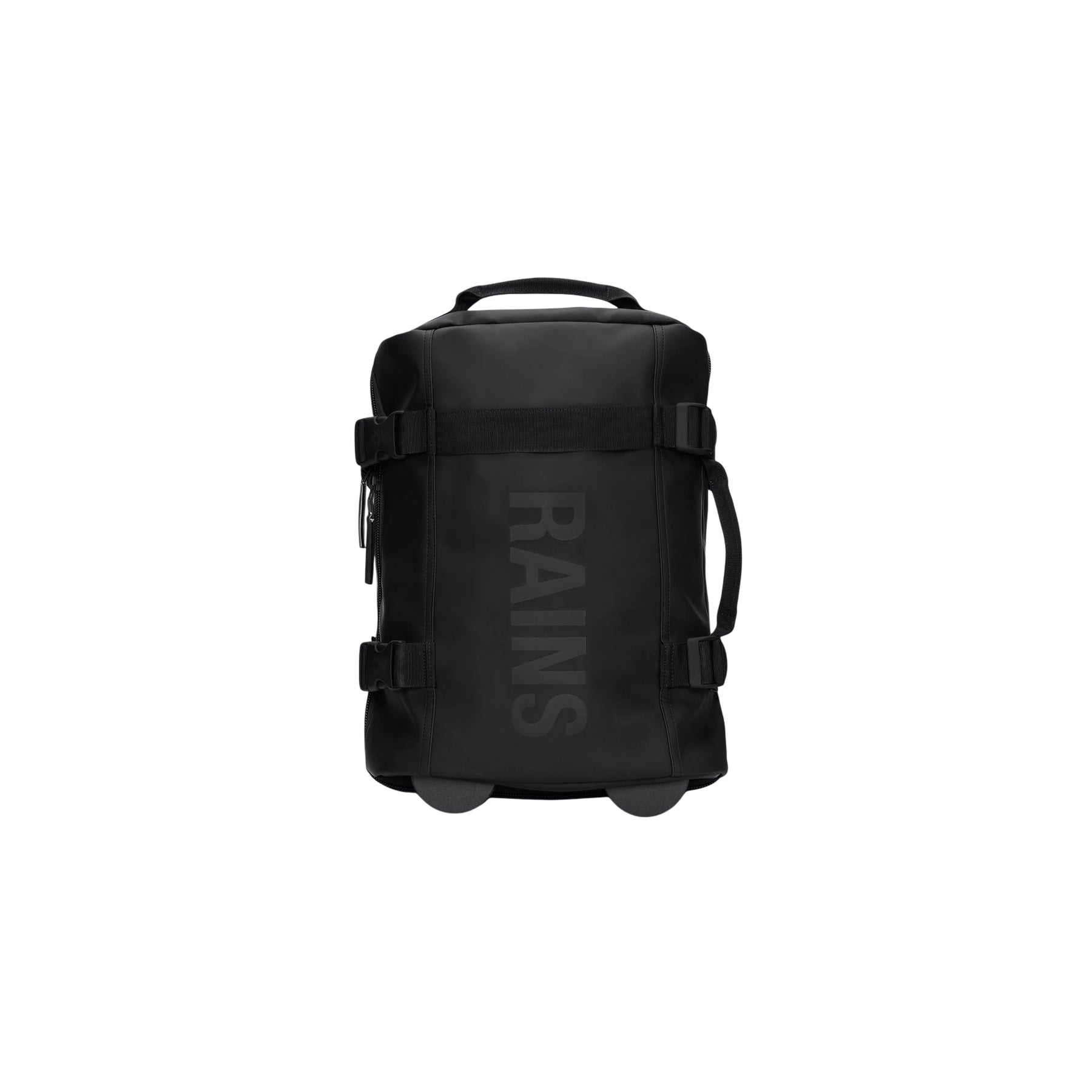 Il Trolley da viaggio unisex Mini Texel Nero di Rains combina stile e praticità. Realizzato in tessuto PU impermeabile, protegge i tuoi effetti personali da ogni intemperia. La zip rinforzata assicura sicurezza, mentre la custodia pieghevole con doppie chiusure in rete e le cinghie di compressione mantengono l’interno organizzato. Il manico telescopico ergonomico e le ruote silenziose facilitano ogni spostamento, per un viaggio senza pensieri. Un compagno affidabile e sofisticato per ogni avventura.