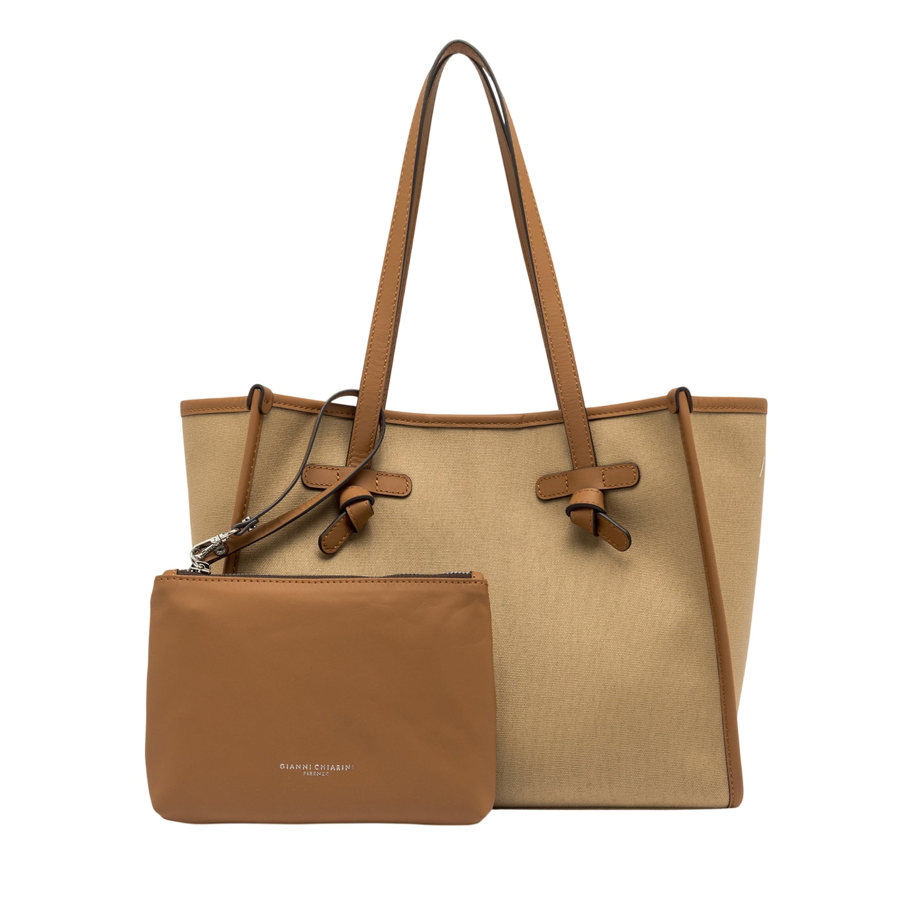 La Borsa Shopping Marcella di Gianni Chiarini combina eleganza italiana e praticità quotidiana. Realizzata in robusto canvas beige, vanta doppi manici in pelle e dettagli raffinati che catturano lo sguardo. Lo scomparto principale con chiusura magnetica offre ampio spazio, mentre la fodera interna e la pochette in pelle con zip garantiscono organizzazione impeccabile. L'etichetta logata in pelle completa un design che non scende a compromessi tra stile e funzionalità, rendendola la scelta ideale per chi ricerca una borsa versatile e sofisticata.