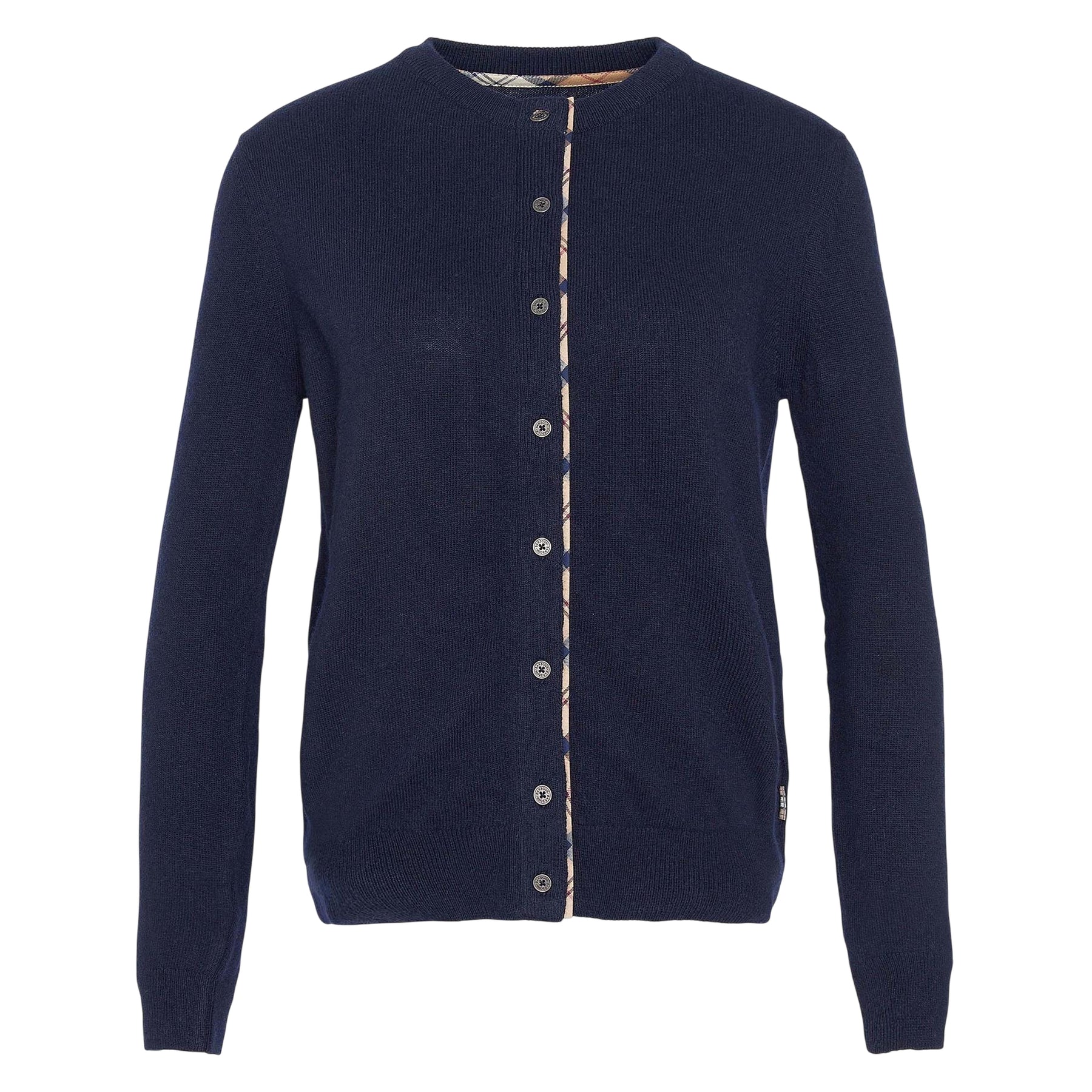 Cardigan Donna Blu, a girocollo, con dettagli motivo tartan
