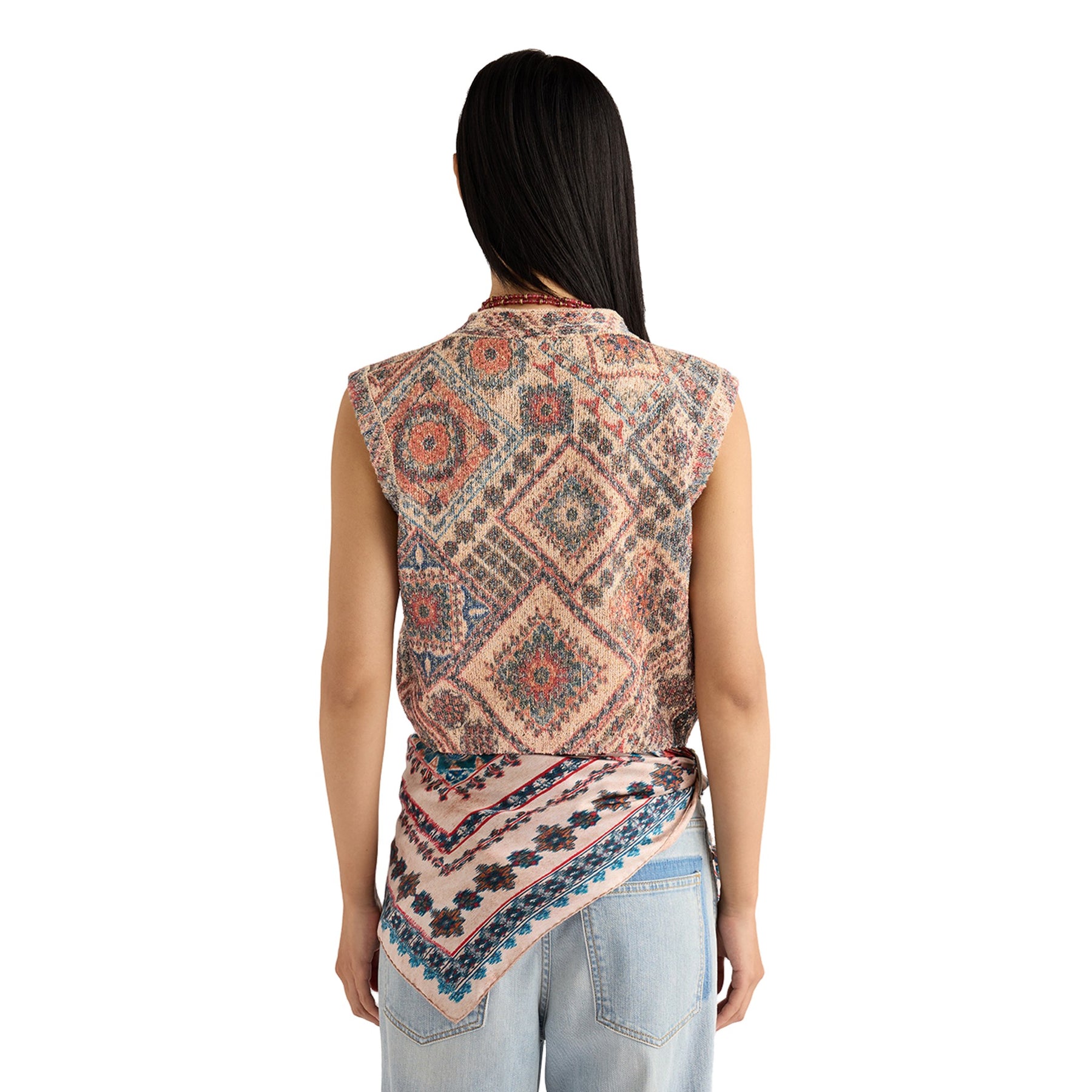 Crea dei look originali con questo Gilet Donna di Momonì. Aperto davanti e con giromanica e fondo a coste è un capo iconico da abbinare in modo originale e autentico. La stampa all over colorata aggiunge un tocco di stile unico!