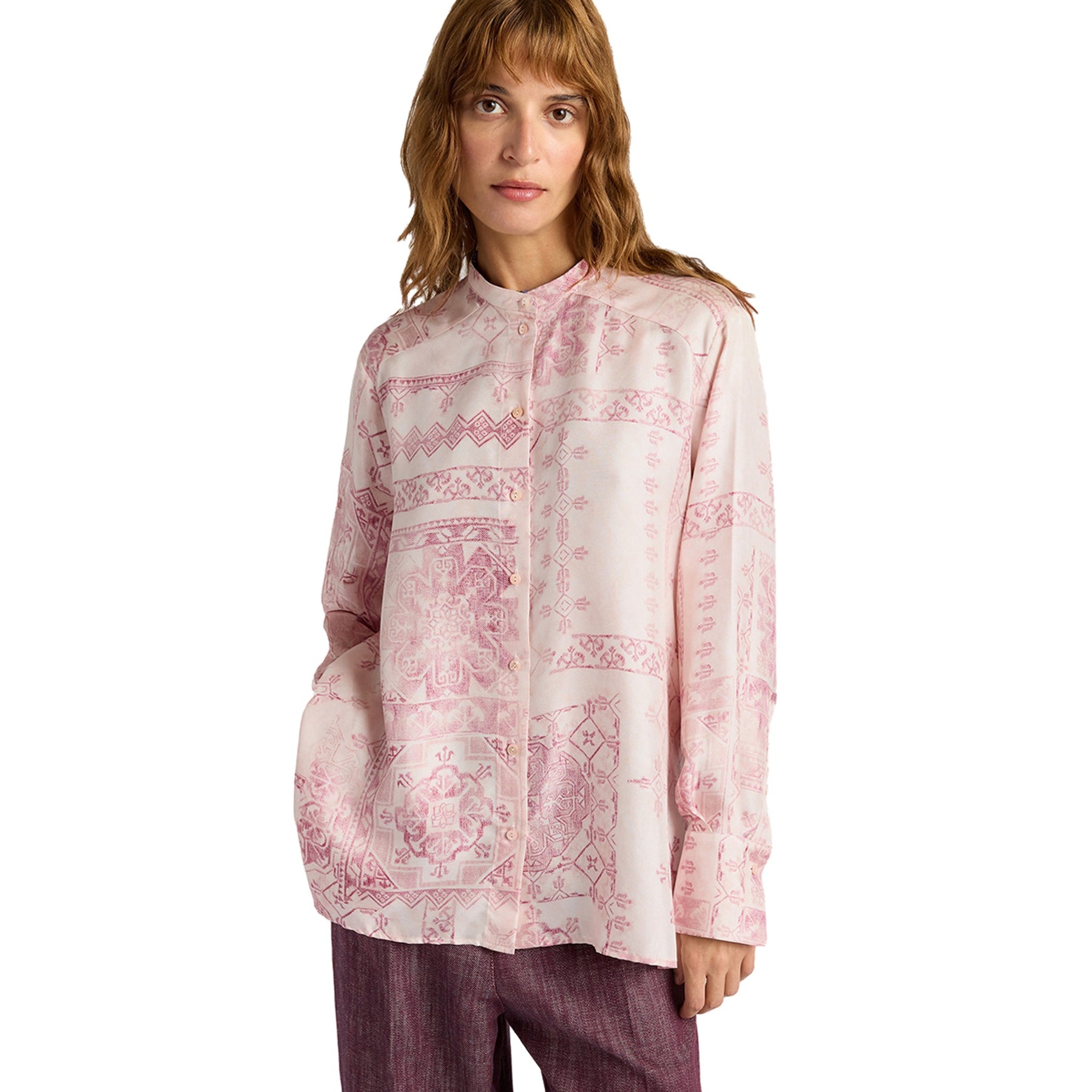 Camicia Donna con collo alla coreana Rosa modella frontale