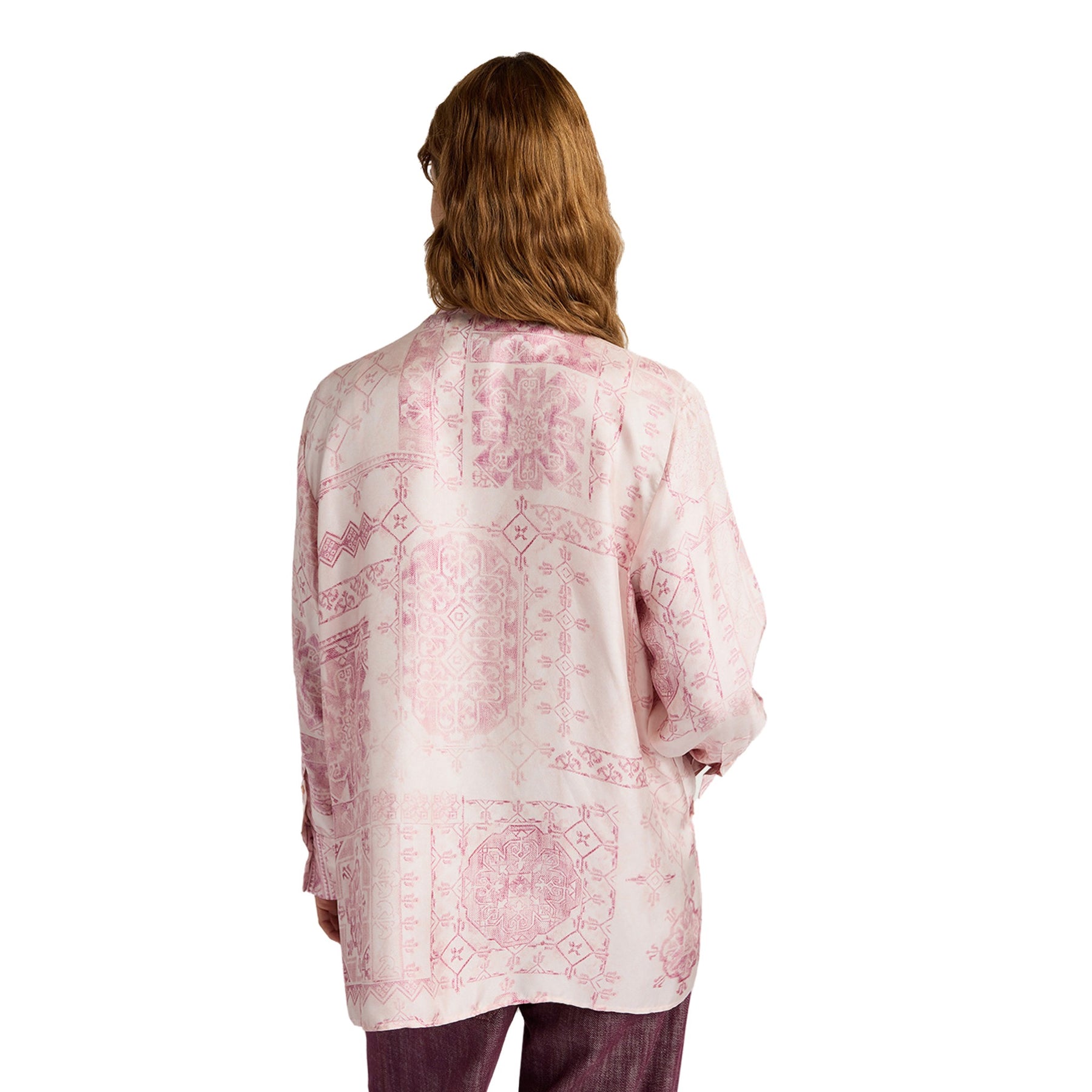 Elegante e femminile, questa Camicia da donna rosa con collo alla coreana di Momonì è pensata per dare carattere anche ai look più essenziali. La stampa all over dona personalità al capo, mentre il carré sulle spalle valorizza la linea con un dettaglio sartoriale. Le maniche lunghe e la chiusura con bottoni completano il design con equilibrio, mentre gli spacchi laterali assicurano comfort e movimento. Perfetta da abbinare sia a pantaloni eleganti che a denim per un outfit ricercato ma versatile.