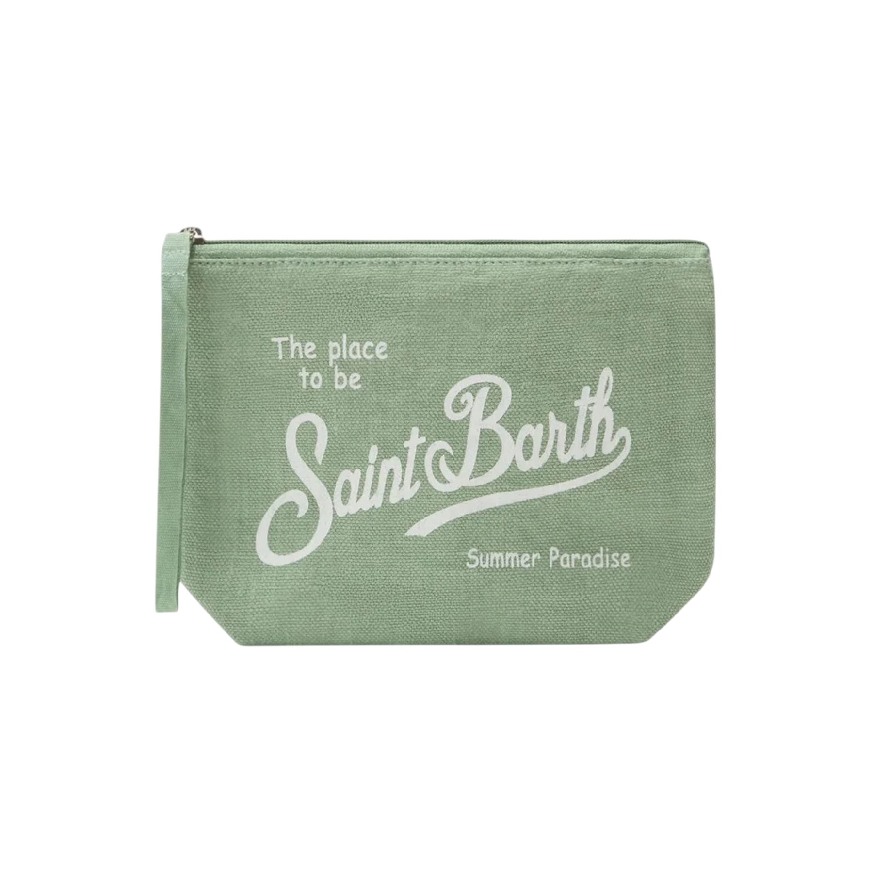 MC2 SAINT BARTH Pochette Aline unisex di lino in verde menta