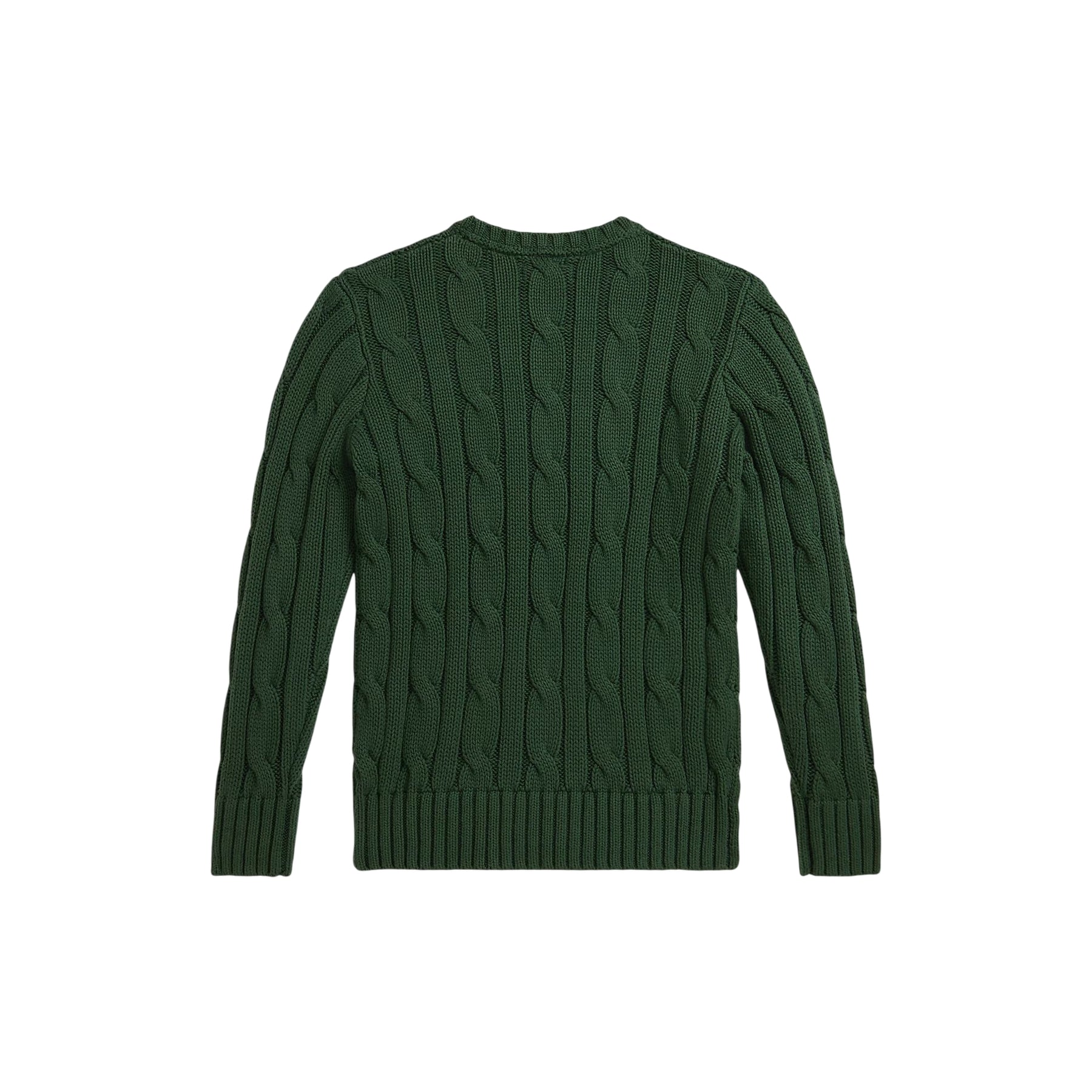 Questa Maglia verde per bambino di Ralph Lauren unisce comfort e stile grazie alla morbida lavorazione a trecce in cotone. Il dettaglio del pony ricamato aggiunge un tocco di simpatia, mentre il girocollo e i polsini a coste assicurano una vestibilità ottimale. Le maniche lunghe e l’orlo rifiniti rendono questa maglia perfetta per accompagnare il tuo bambino con eleganza in ogni occasione.