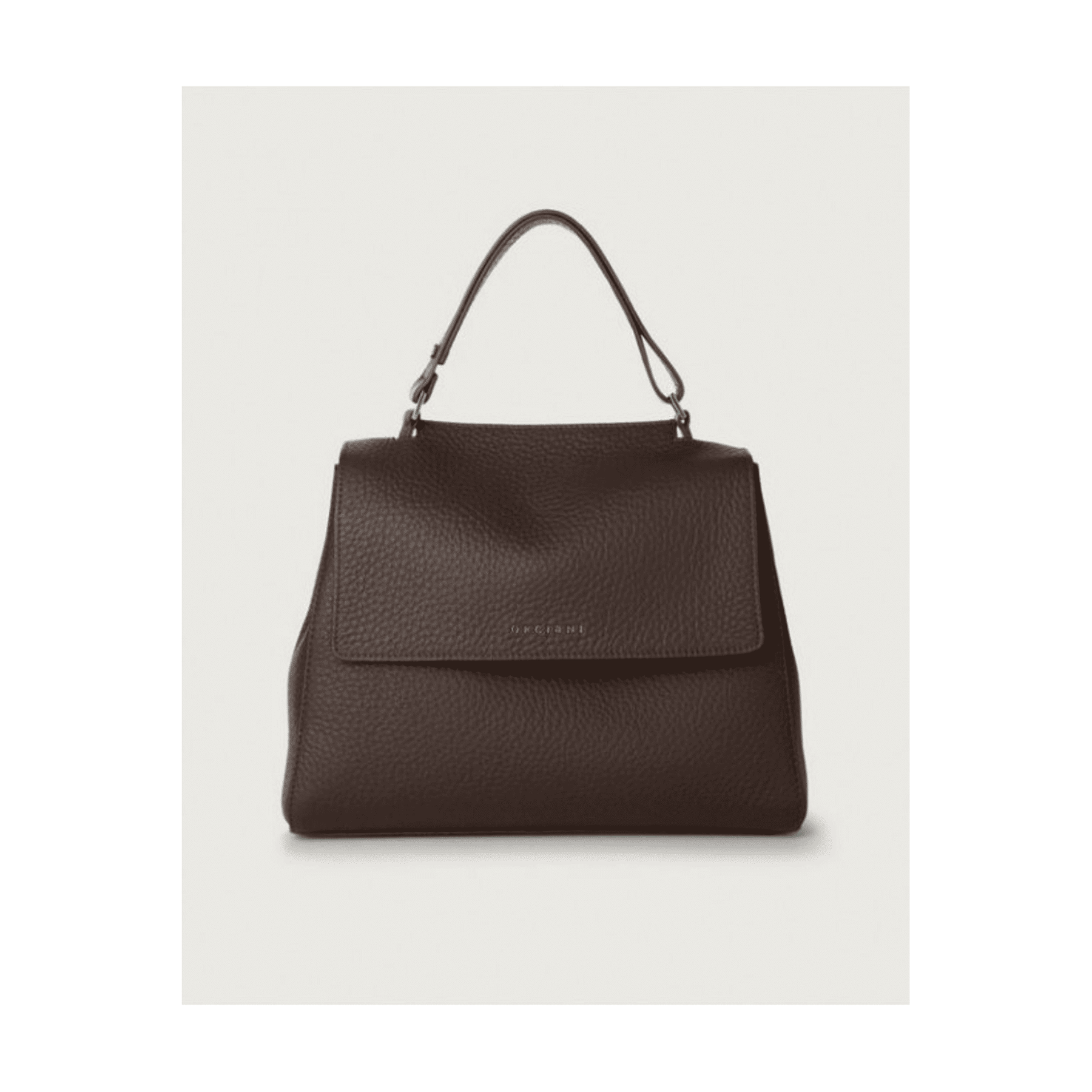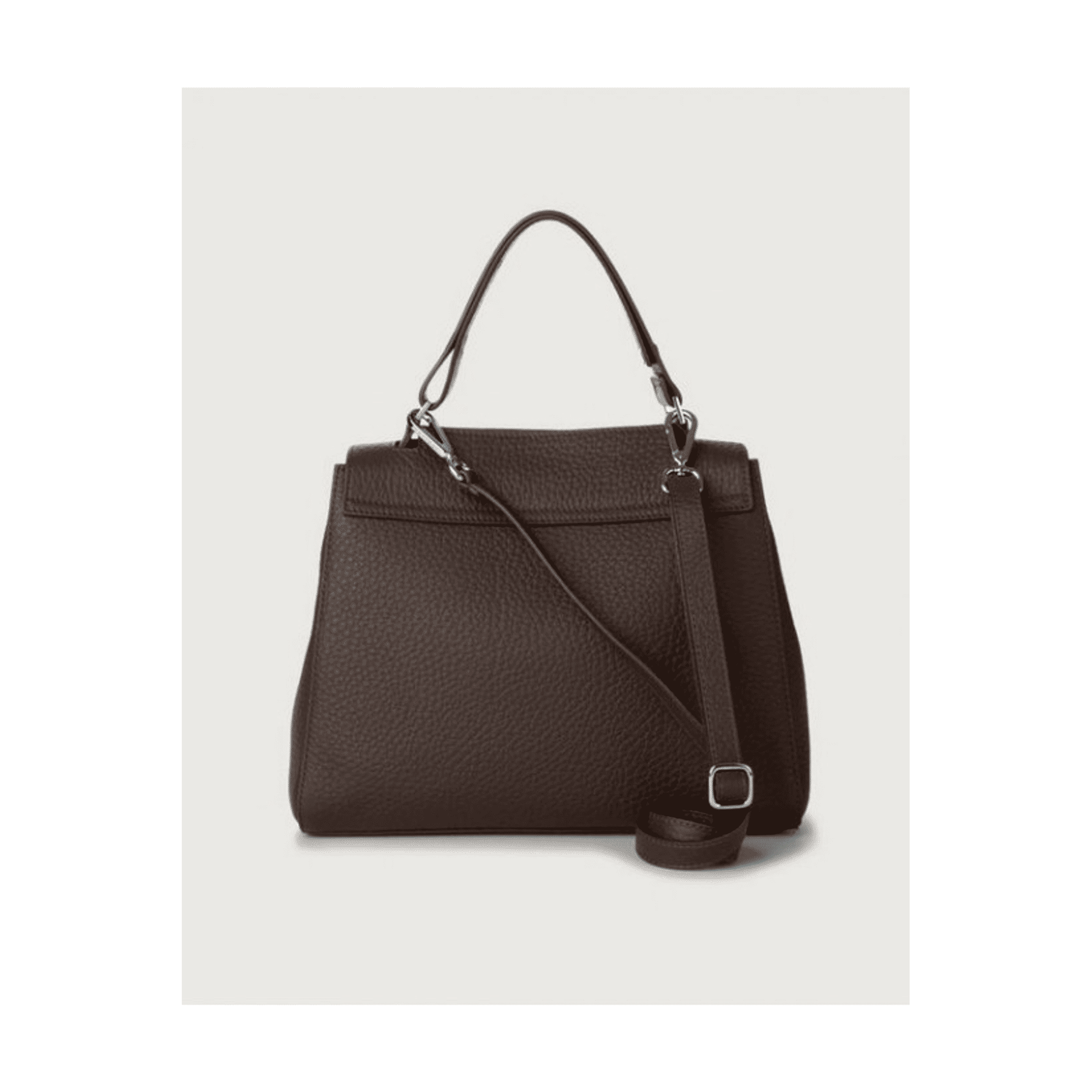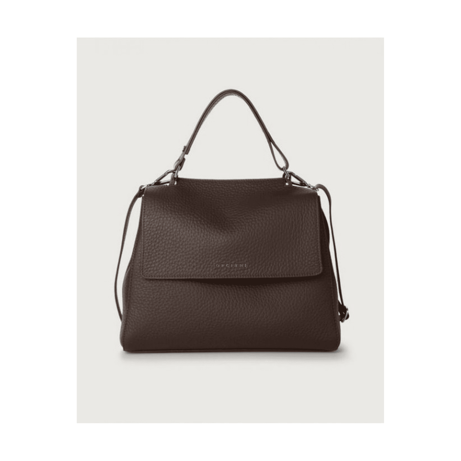 Sveva nella versione media rapprtesenta sicuramente la borsa iconica e intramontabile firmata Orciani. Pratica e versatile, da portare a mano, a spalla oppure a tracolla. Realizzata in morbida pelle martellata con chiusura a bottone magnetico. Tasca interna con zip. Impreziosita da dettagli in metallo lucido e dal logo Orciani in lettering metallico applicato frontalmente. Made in Italy.