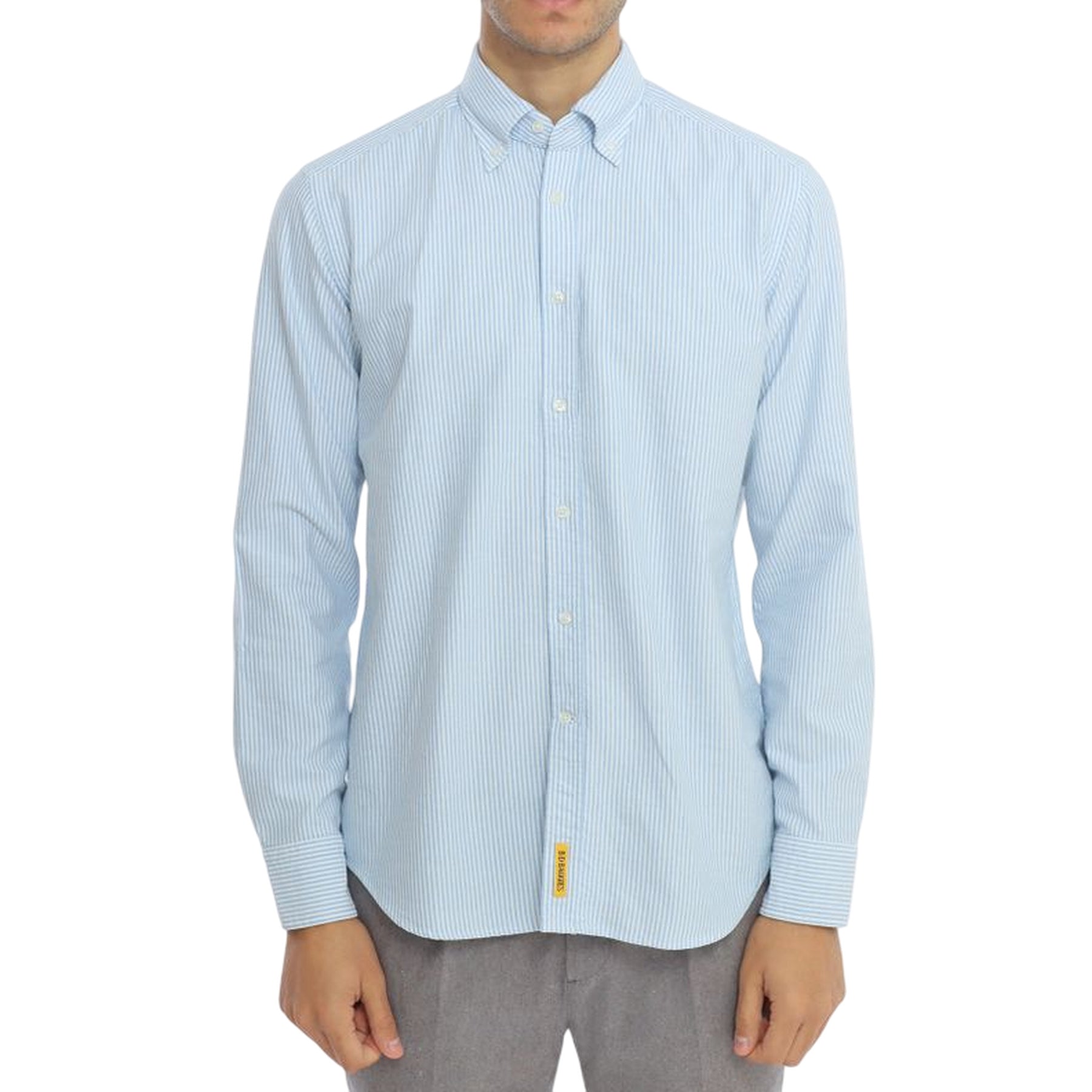 Questa Camicia da uomo firmata B-d Baggies combina stile classico e versatilità senza compromessi. Il motivo a righe azzurro conferisce un'eleganza sofisticata, perfetta per l'ufficio o per occasioni più casual. Il colletto a punta button down offre un look raffinato e facilmente regolabile, mentre le maniche lunghe garantiscono una copertura completa e professionale. La chiusura frontale con bottoni assicura praticità e un fit impeccabile, completata dai polsi con bottoni che mantengono le maniche in posizione durante la giornata. Un capo essenziale che non può mancare nel guardaroba di chi apprezza la qualità e il design senza tempo.
