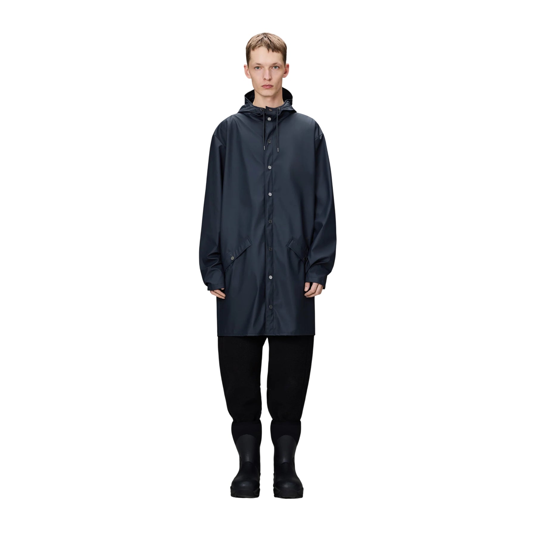 Questo Impermeabile unisex lungo di Rains, in elegante navy, unisce protezione e stile senza compromessi. Realizzato in tessuto impermeabile con finitura effetto pelle, assicura confort anche sotto la pioggia più intensa. Il cappuccio regolabile con visiera integrata e le tasche laterali offrono praticità, mentre le cuciture termosaldate e le aperture di ventilazione garantiscono durata e traspirabilità. Con polsini regolabili e orlo a coda di pesce, questo capo leggero e morbido valorizza ogni look con un tocco minimal ed elegante. Perfetto per affrontare ogni giornata con classe e sicurezza.