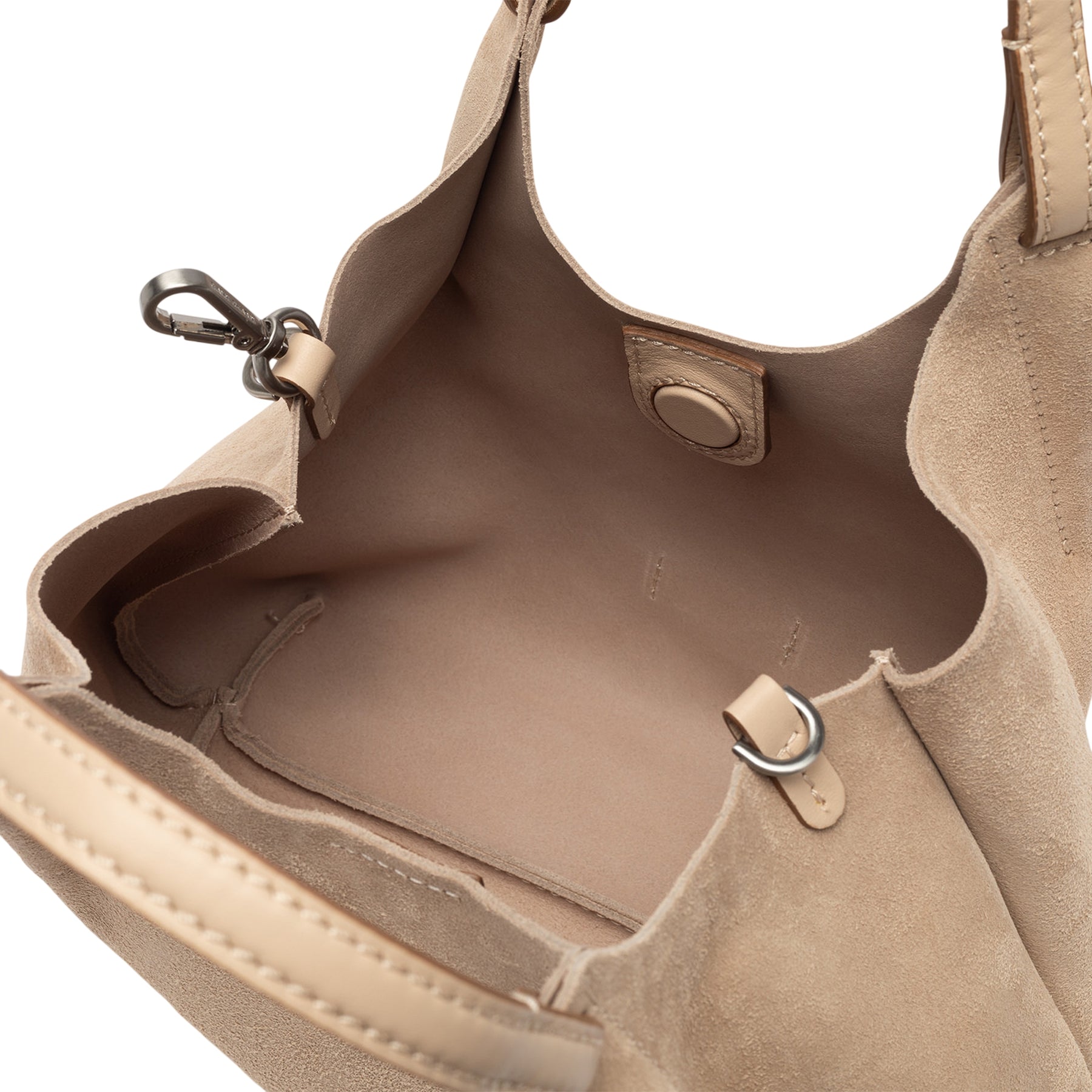 Scopri la Borsa a mano Dua, un capolavoro di eleganza e praticità firmato Gianni Chiari. Realizzata in pregiato scamosciato, questa borsa incarna il design italiano con linee pulite e raffinate. I doppi manici in pelle liscia offrono una presa confortevole e duratura, mentre il monoscomparto sfoderato mantiene la borsa leggera e maneggevole per le tue giornate. La chiusura con bottone a pressione garantisce semplicità e funzionalità, arricchita dalla tracolla in pelle rimovibile che ti permette di portarla come preferisci.