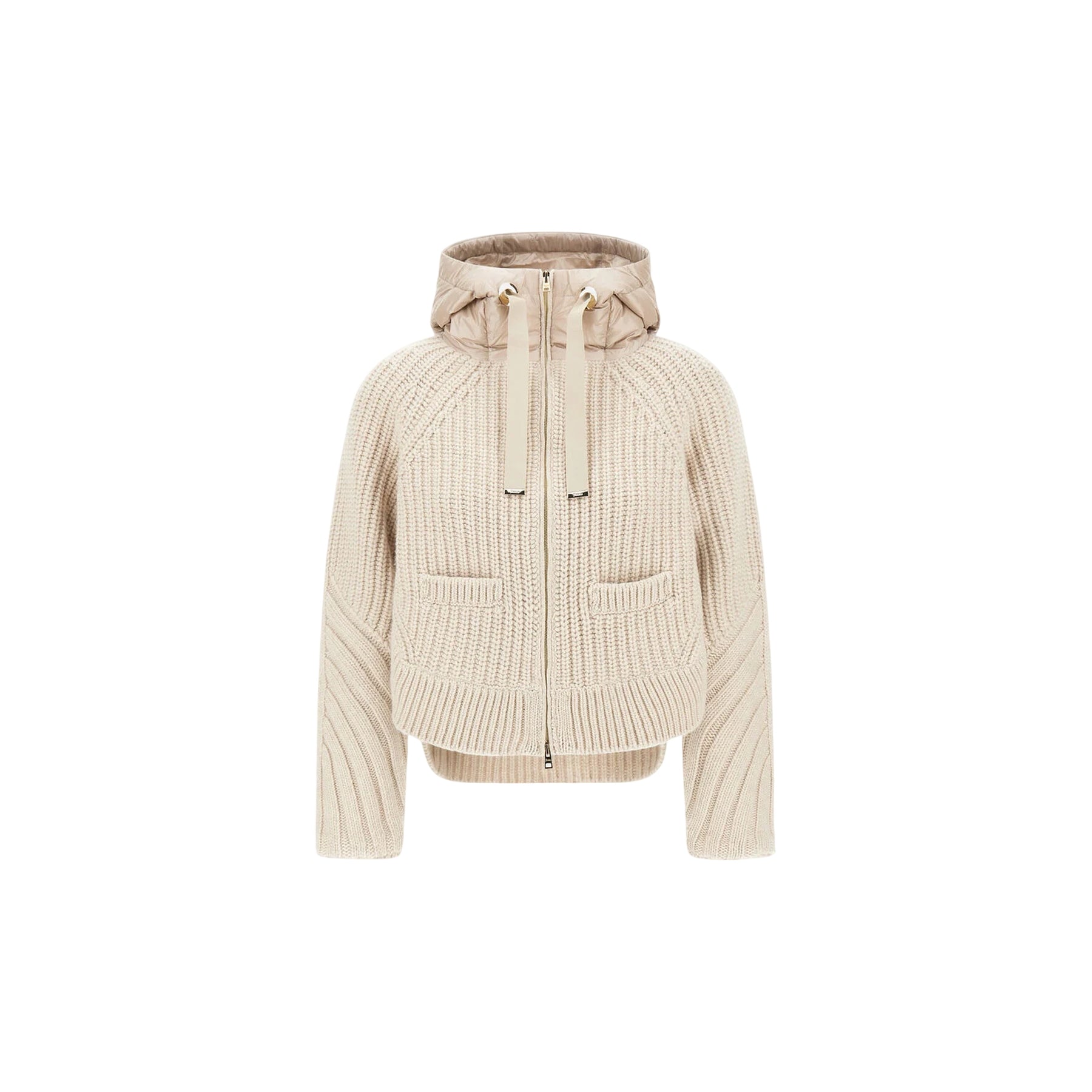 • Cardigan Donna in pura lana con inserti in nylon Beige