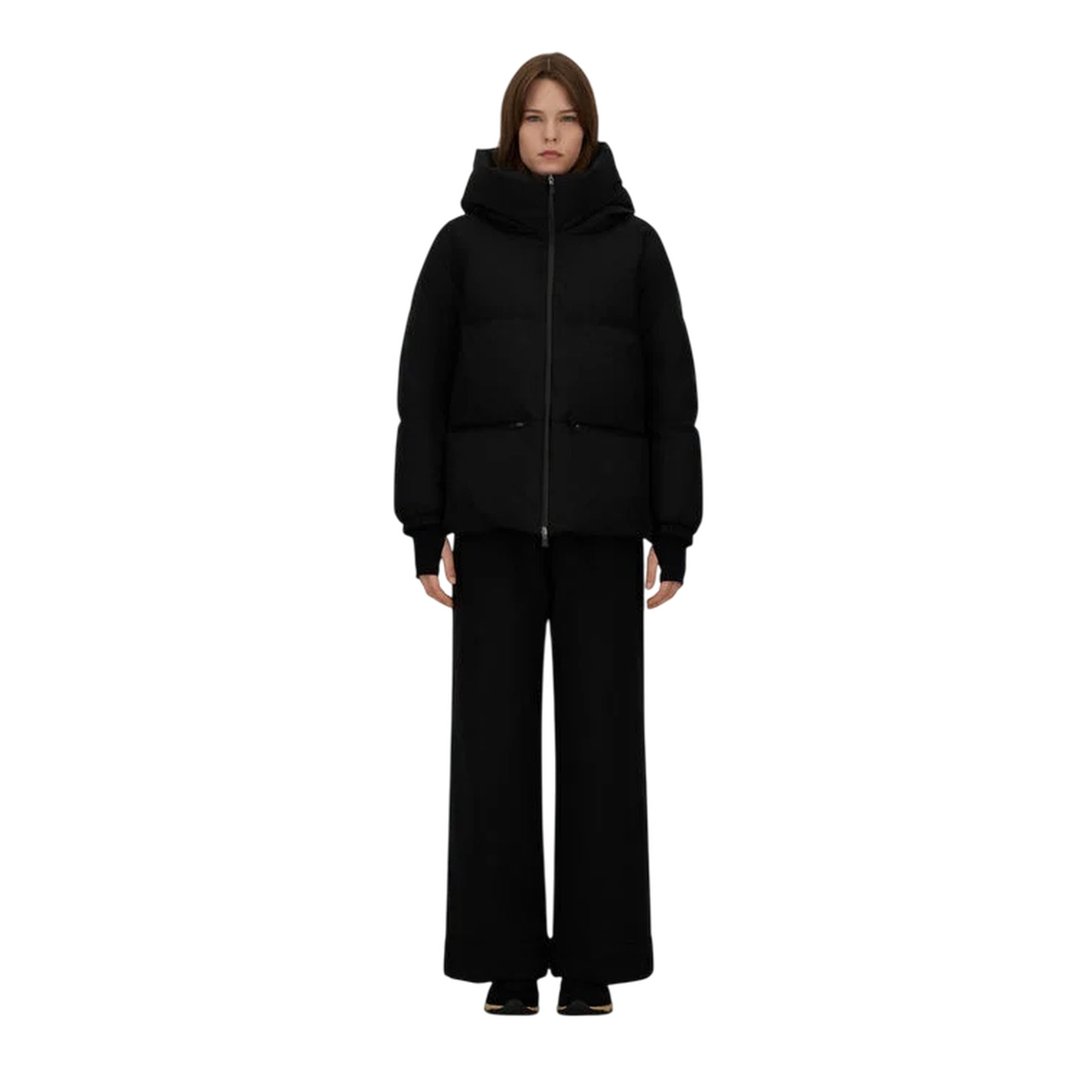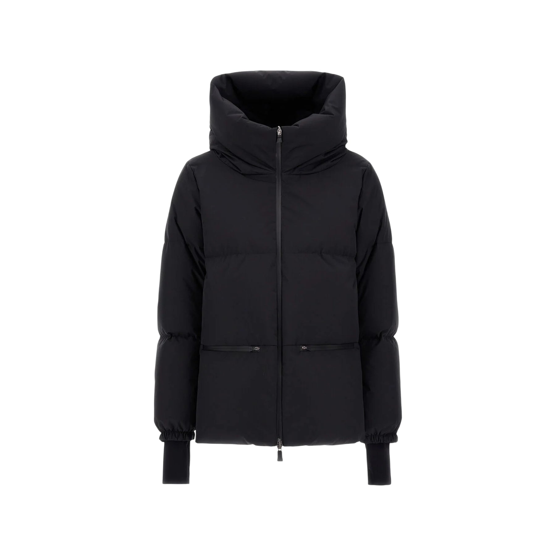 Questo Giubbotto donna nero di Herno unisce funzionalità e stile. La trapuntatura a righe con imbottitura in piuma offre calore leggero, mentre il trattamento idrorepellente protegge dalle intemperie. Dotato di cappuccio e collo alto per una maggiore copertura, polsini in maglia con foro per il pollice assicurano comfort e adattamento. Le tasche con zip e la chiusura a doppio cursore combinano praticità e sicurezza. Il logo sul retro completa il design raffinato, ideale per affrontare la stagione fredda con eleganza.