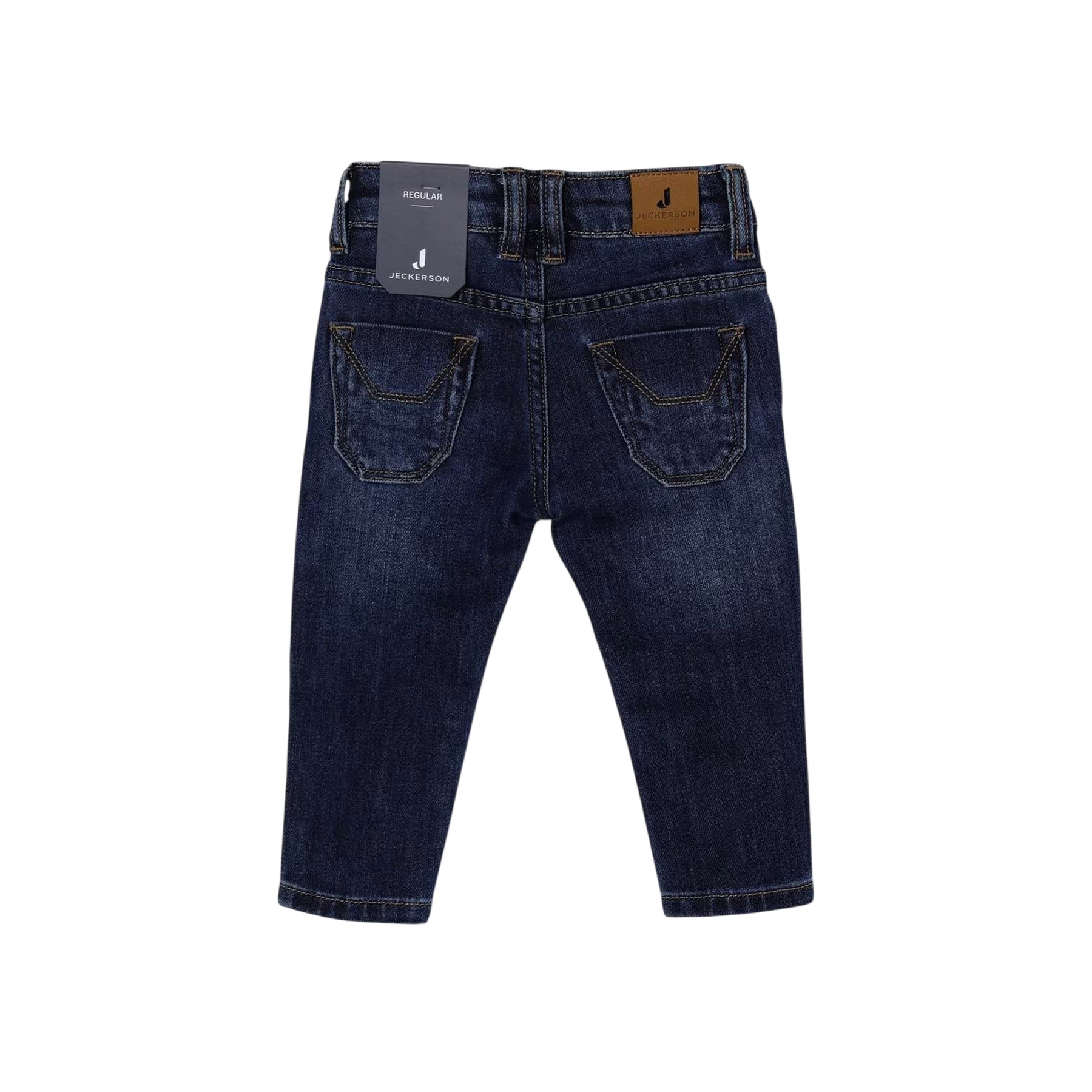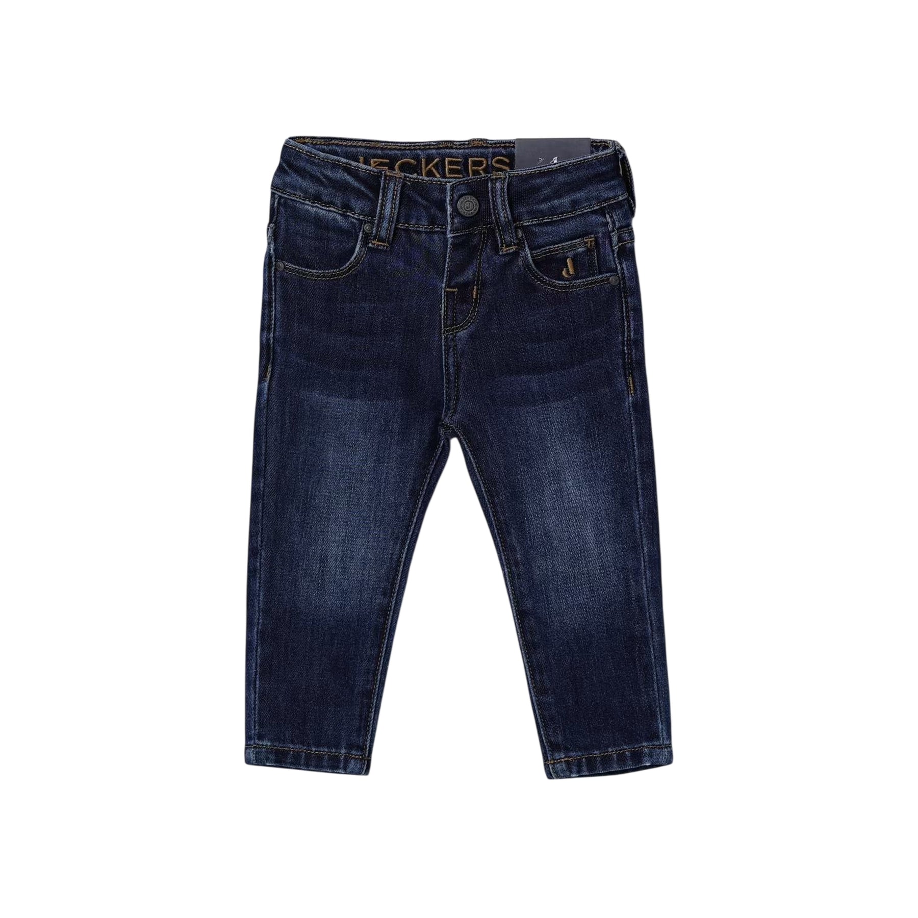 Pantaloni neonato in denim blu con design classico e funzionale firmati Jeckerson. Caratterizzati dal modello a 5 tasche, passanti in vita e chiusura pratica con bottone e zip, garantiscono comfort e facilità di movimento per il tuo piccolo. L'orlo dritto regala un'estetica pulita e versatile, perfetta per abbinamenti quotidiani. Realizzati in denim di qualità, questi pantaloni uniscono stile tradizionale e praticità, diventando un capo essenziale nel guardaroba del neonato.
