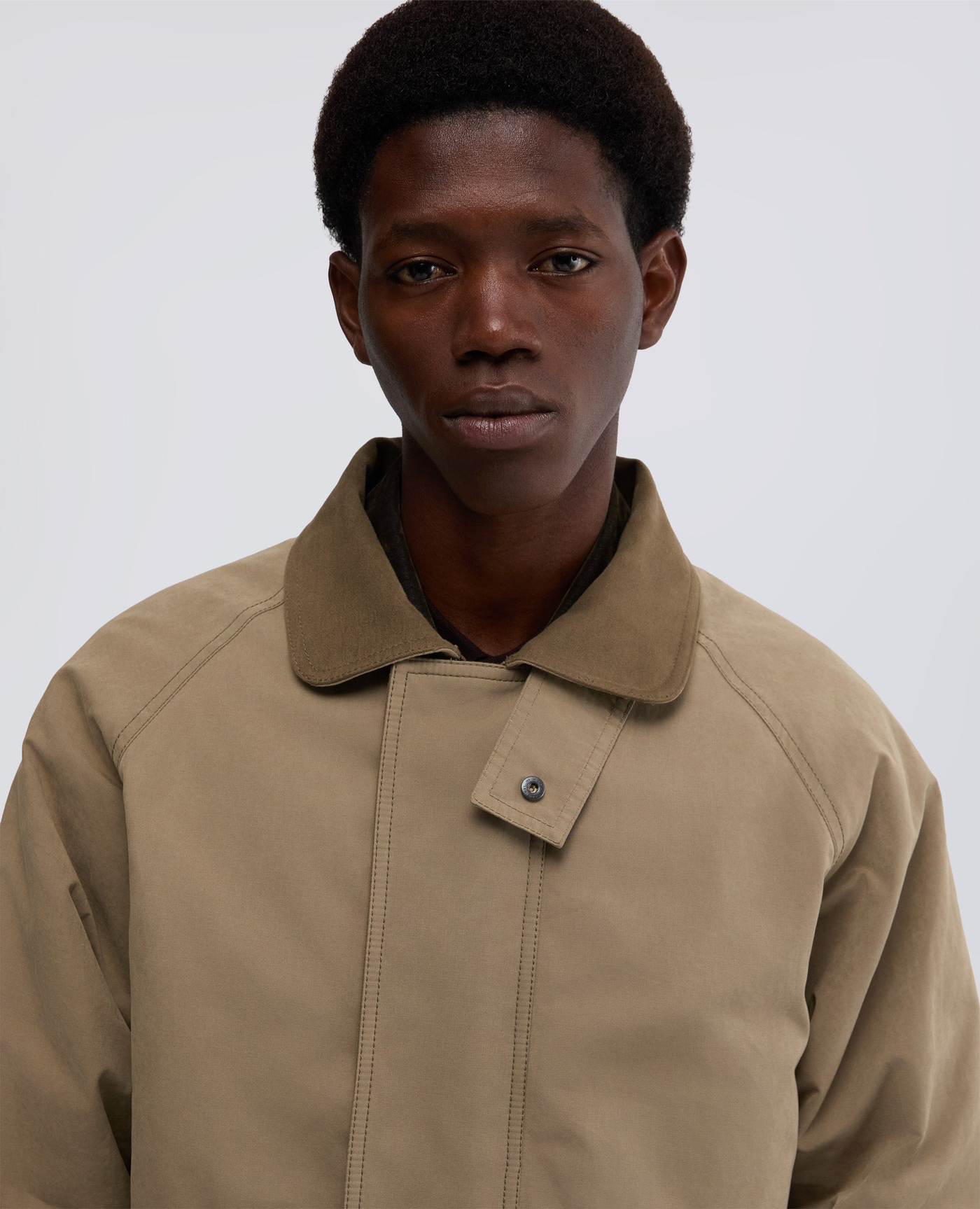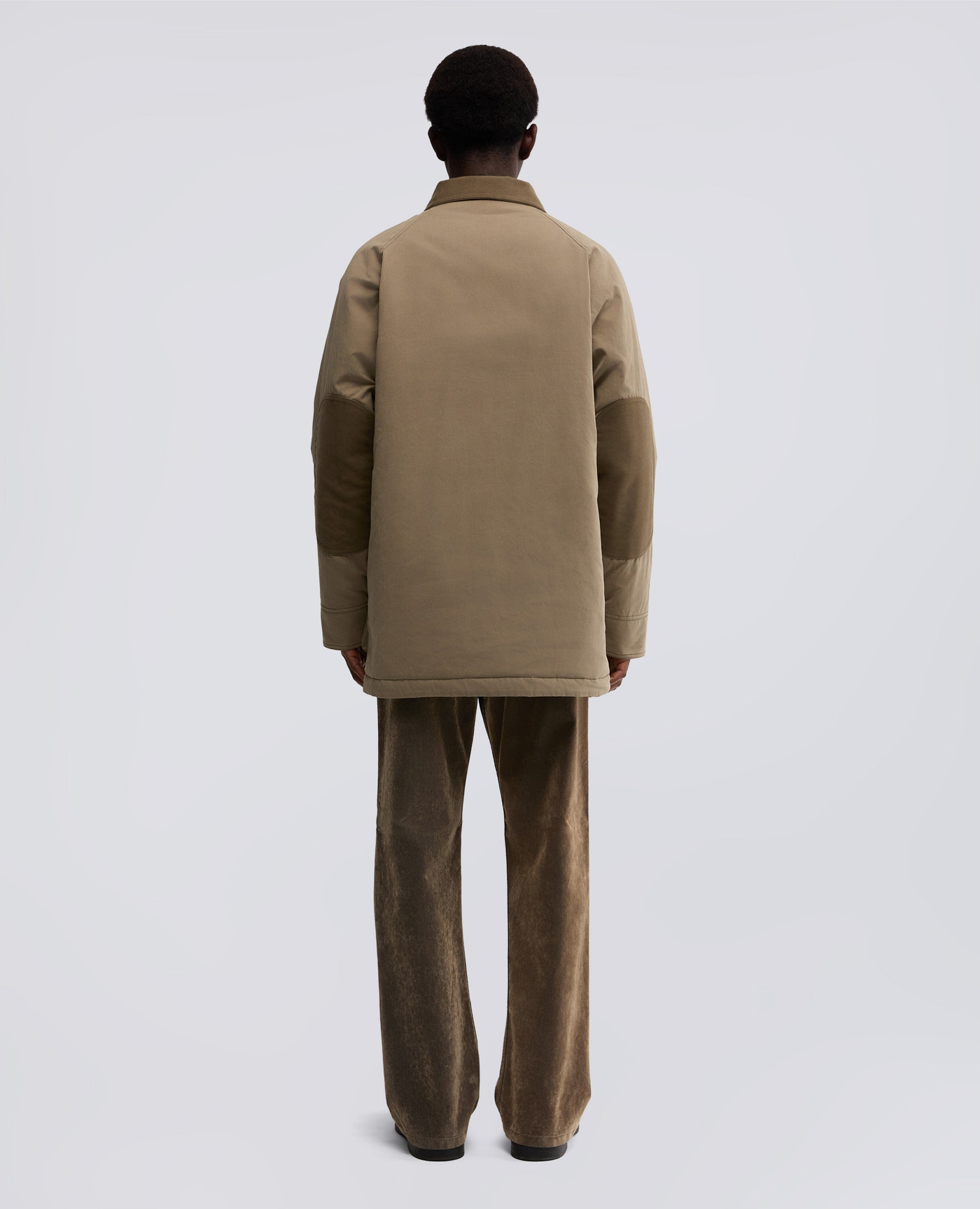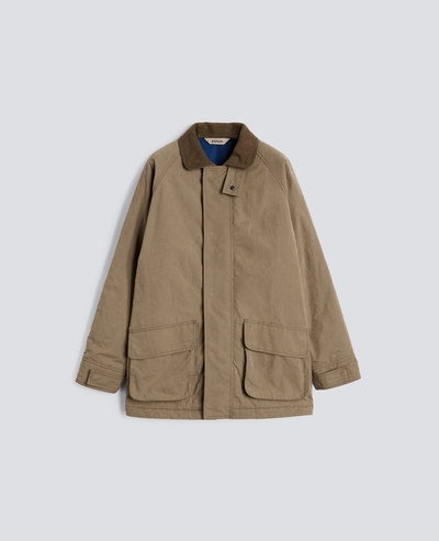 CABAN SCHAFER IN TELA DI MISTO COTONE - TORTORA Il Caban realizzato in tela di misto cotone Dry Wax con imbottitura in ovatta Thermore e fodera interna in nylon trapuntata con particolare motivo a cipolla e con carre in lana a contrasto. Questo capo presenta una chiusura frontale con zip e bottoni a pressione nascosti, due ampie tasche inferiori con patta, colletto e toppe sul retro manica a contrasto. Le maniche lunghe raglan sono rifinite da polso regolabile. Il tirazip logato e l'etichetta Aspesi completano il look. Vestibilità regolare. Caratteristiche principali: - Realizzato in tela di misto cotone Dry Wax - Imbottitura in ovatta Thermore per un comfort extra - Fodera interna in nylon trapuntata con motivo a cipolla - Chiusura frontale con zip e bottoni a pressione nascosti - Due ampie tasche inferiori con patta - Colletto e toppe sul retro manica a contrasto - Maniche lunghe raglan con polsini regolabili - Tirazip logato e etichetta Aspesi inclusi - Vestibilità regolare