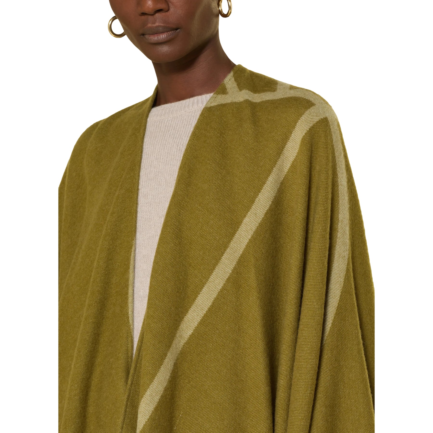 Stola donna in maglia fine di Max Mara con elegante motivo a scacchi che cattura lo sguardo. L'orlo rifinito con delicate frange aggiunge movimento e raffinatezza al capo, mentre il logo stampato garantisce autenticità e qualità. Perfetta per chi ricerca uno stile classico con dettagli sofisticati, questa stola verde si abbina facilmente a qualsiasi guardaroba, offrendo calore e eleganza in ogni occasione.