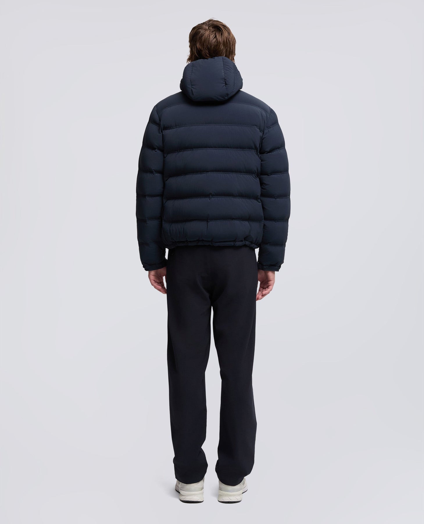 GIUBBOTTO HOBBS IN TESSUTO TECNICO STRETCH - NAVY Giubbotto realizzato in tessuto tecnico comfort stretch e imbottito in morbida ovatta a fibre sciolte effetto piuma a iniezione diretta con particolare trapuntatura orizzontale a due aghi. Il capo presenta una chiusura frontale con zip a doppio cursore, due tasche laterali con zip invisibili e una coulisse con fermacorda logato al fondo. Il modello è completato da polsi regolabili con bottoni a pressione e cappuccio fisso bordato in Lycra in tinta. Il tirazip logato Aspesi rifinisce il capo. Vestibilità regolare. Caratteristiche principali: - Realizzato in tessuto tecnico comfort stretch - Imbottitura in morbida ovatta a fibre sciolte effetto piuma - Trapuntatura orizzontale a due aghi - Chiusura frontale con zip a doppio cursore - Due tasche laterali con zip invisibili - Coulisse con fermacorda logato al fondo - Polsi regolabili con bottoni a pressione - Cappuccio fisso bordato in Lycra - Tirazip logato Aspesi - Vestibilità regolare