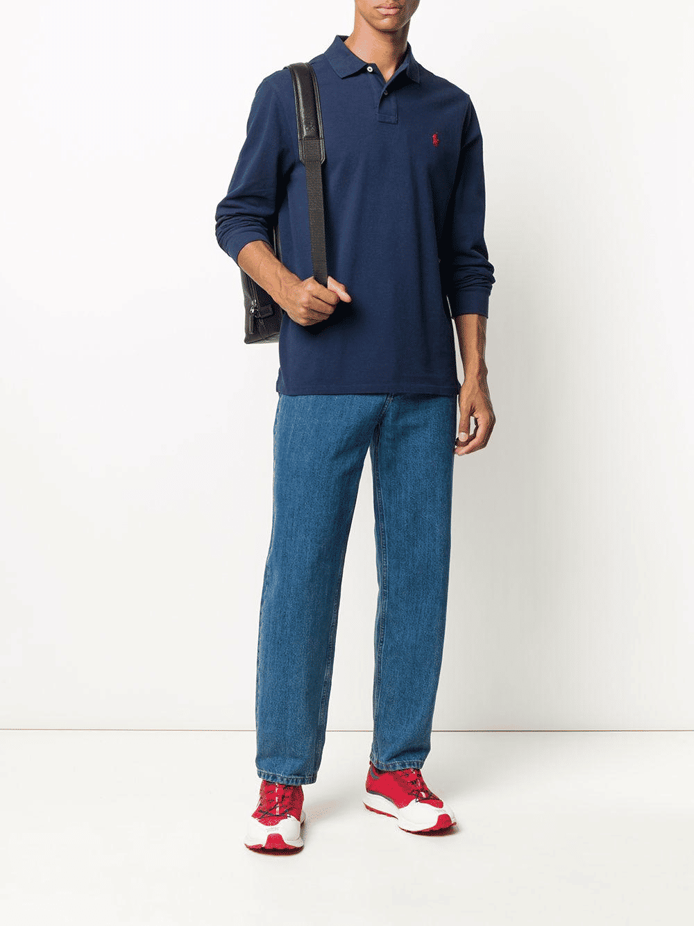 Polo a maniche lunghe in cotone blu con logo di Polo Ralph Lauren