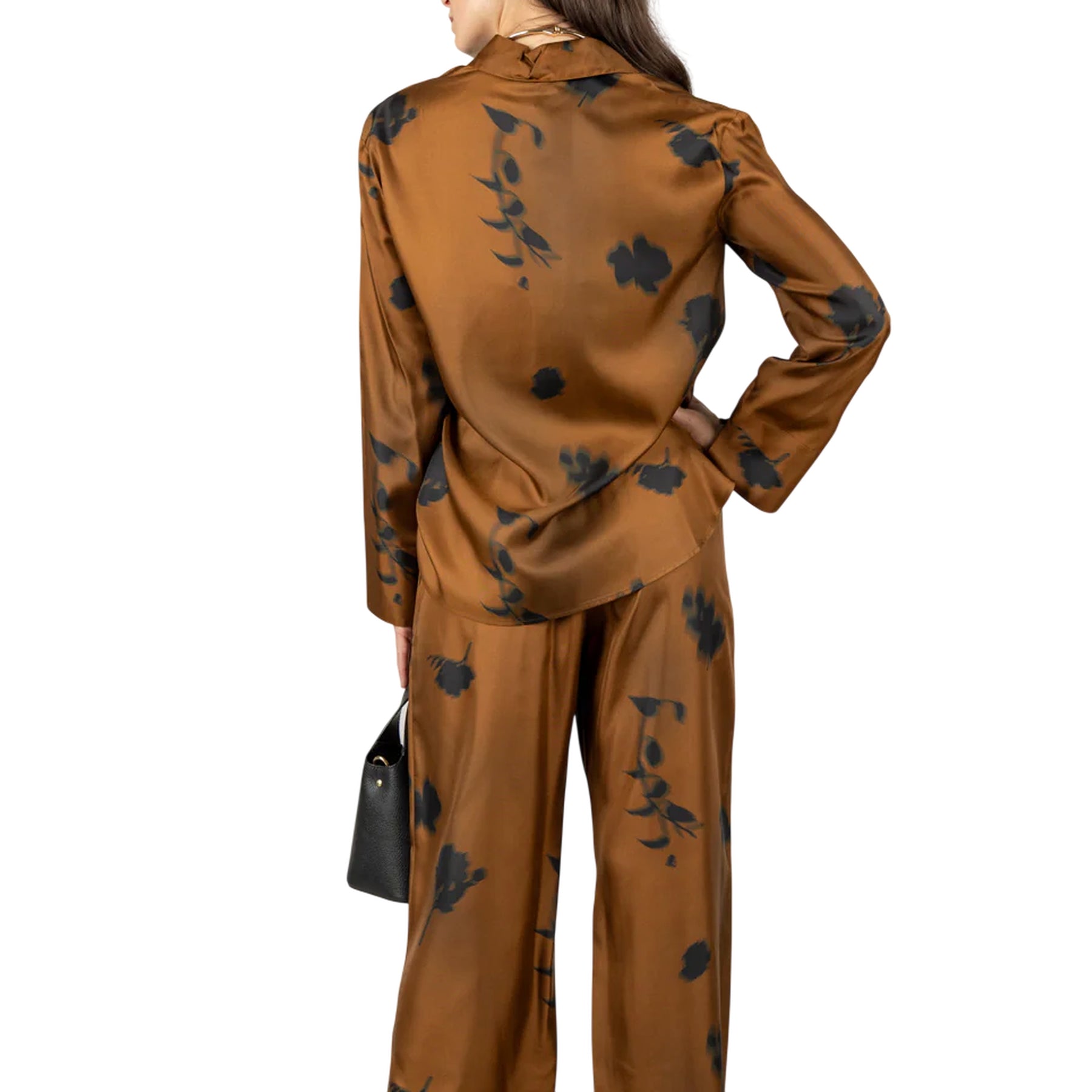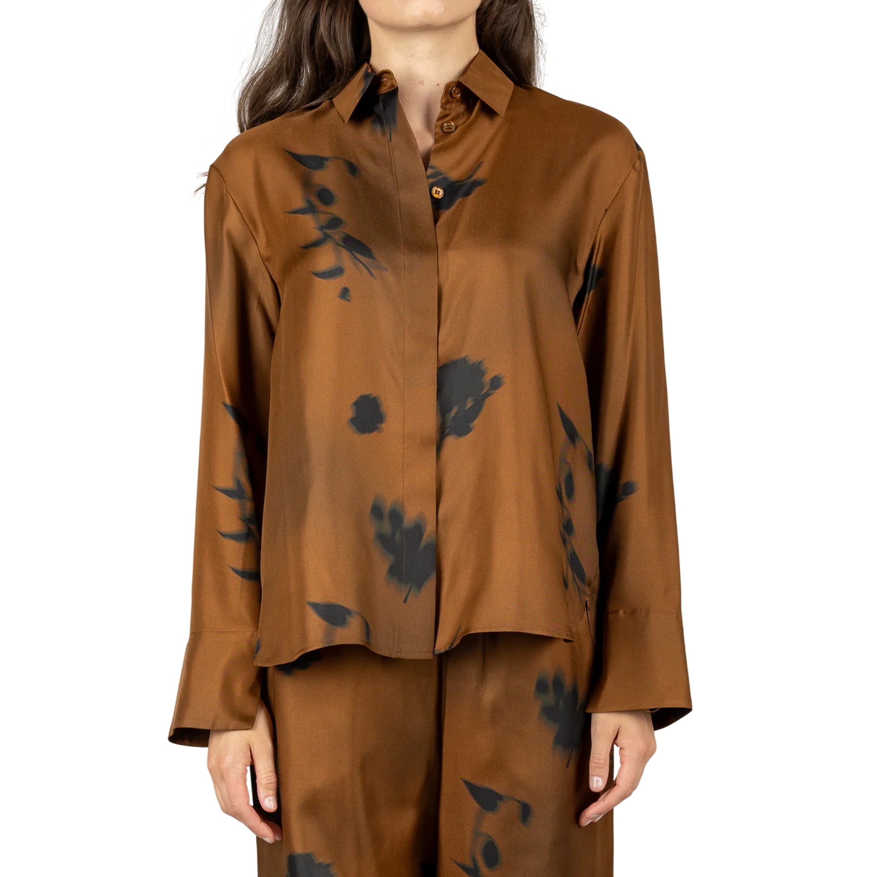 Camicia Donna Marrone, con colletto classico e fantasia floreale