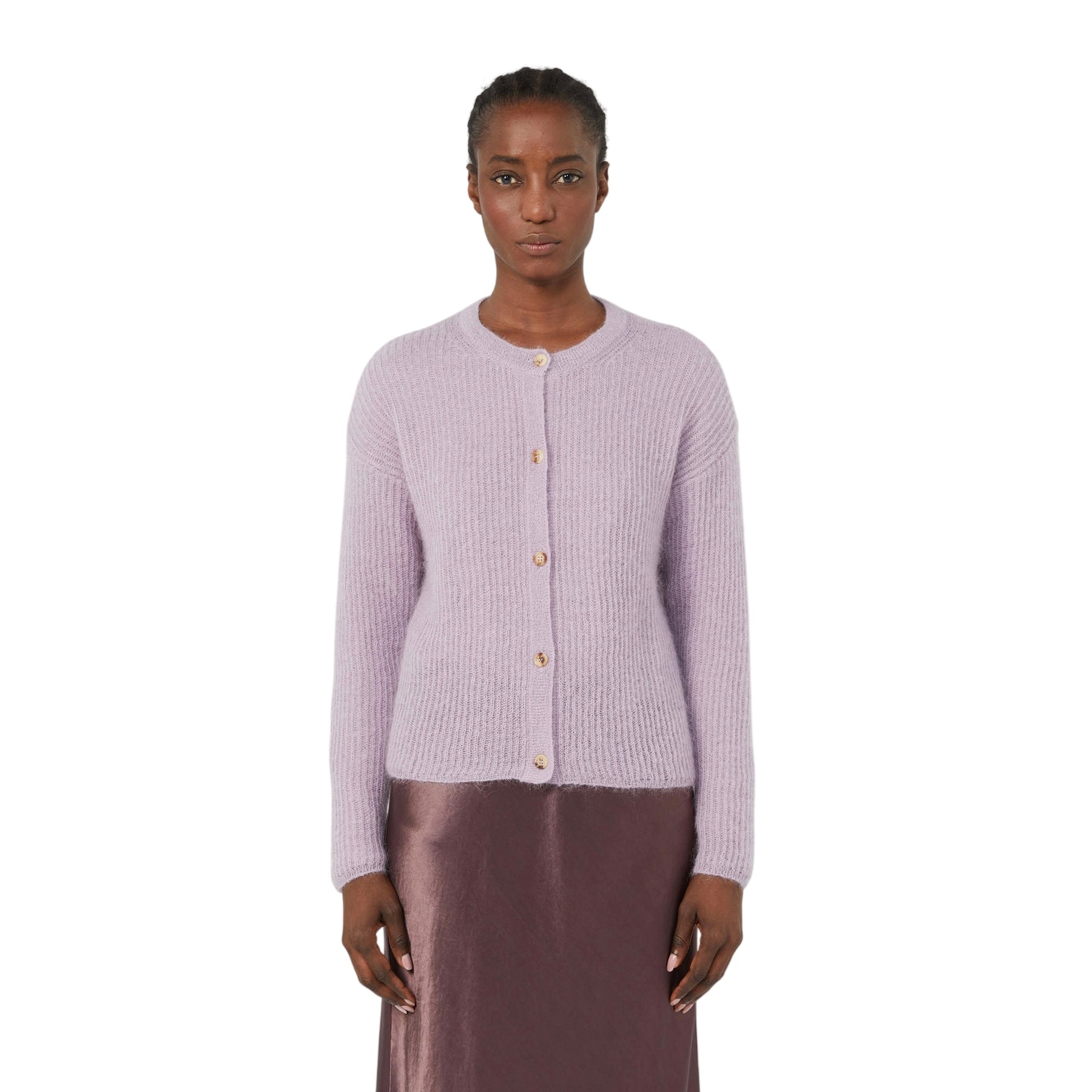 Scopri l'eleganza senza tempo con questo Cardigan cropped in misto mohair di Max Mara. Il modello Meandro, lavorato a costa inglese, avvolge il corpo in morbidezza e calore, mentre il taglio in vita affina la silhouette con femminilità sofisticata. La tonalità glicine, delicata e luminosa, si adatta a ogni guardaroba, trasformando ogni look in un'affermazione di stile consapevole. Un capo esclusivo per chi non sceglie il compromesso tra comfort e distinzione.
