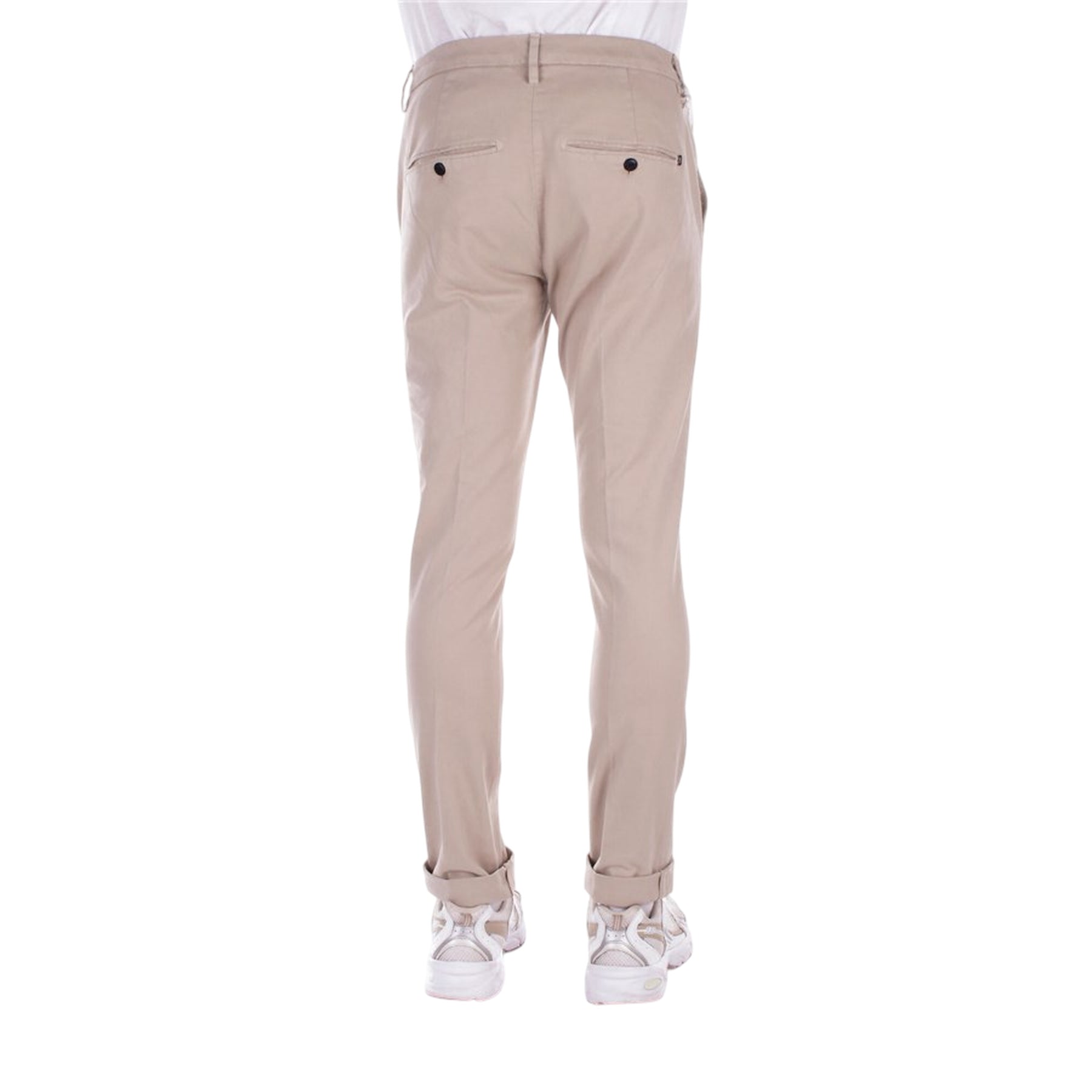 Questo Pantaloni Uomo slim in gabardina stretch di Dondup offre una vestibilità confortevole grazie al tessuto elasticizzato. Il design a tinta unita con vita bassa e passanti valorizza ogni look, mentre le tasche laterali oblique e quelle posteriori con bottone uniscono praticità e stile. Un vero must-have!