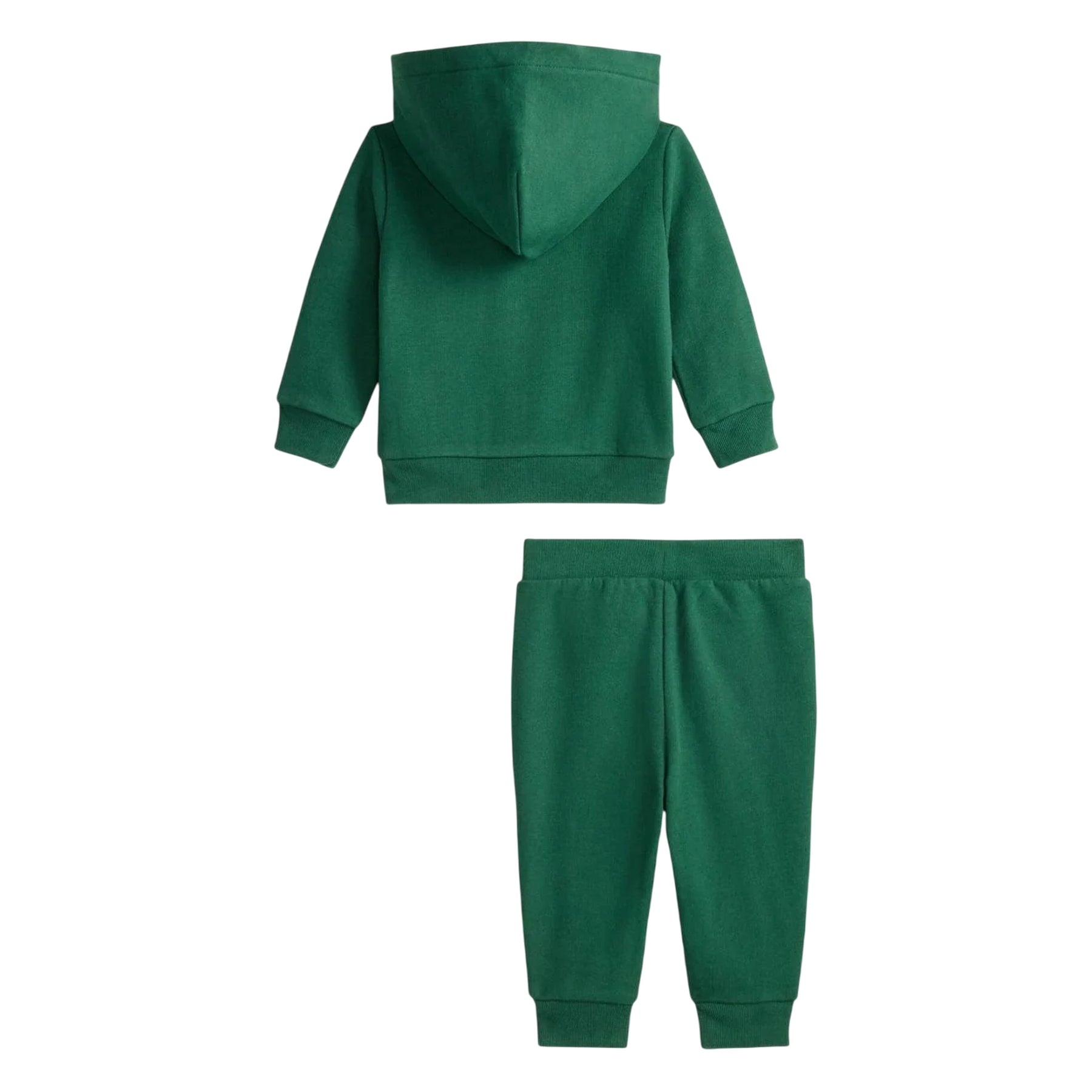 Questa Tuta sportiva 2 pezzi per neonato firmata Polo Ralph Lauren, in un fresco verde tinta unita, unisce comfort e stile. La felpa con cappuccio e zip garantisce praticità, mentre orlo e polsi elasticizzati offrono una calzata perfetta. Il pony ricamato aggiunge un tocco di eleganza. I pantaloni lunghi, con vita e fondo elasticizzati, assicurano libertà di movimento e comodità tutto il giorno. Una scelta ideale per vestire il tuo piccolo con funzionalità e classe.