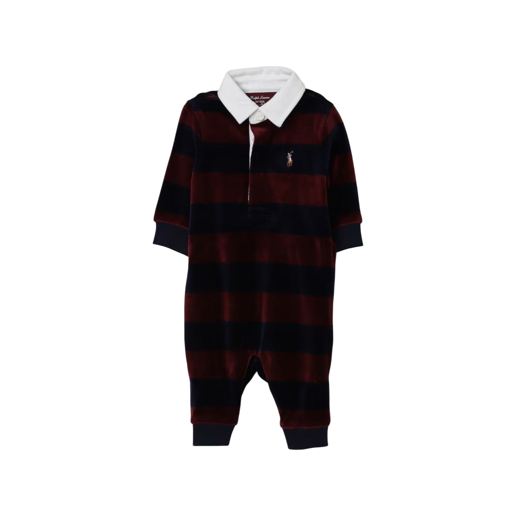 Questa Tutina intera neonato a righe bicolor di Polo Ralph Lauren unisce praticità e stile. L’abbottonatura frontale nascosta con bottoni automatici garantisce una vestibilità comoda e facile da indossare, mentre il colletto polo in tinta unita aggiunge un tocco di eleganza discreta. La fantasia a righe dona freschezza e vivacità, completata dal dettagliato pony ricamato che arricchisce il capo con un particolare accattivante. Perfetta per il comfort quotidiano del tuo bambino senza rinunciare al design.
