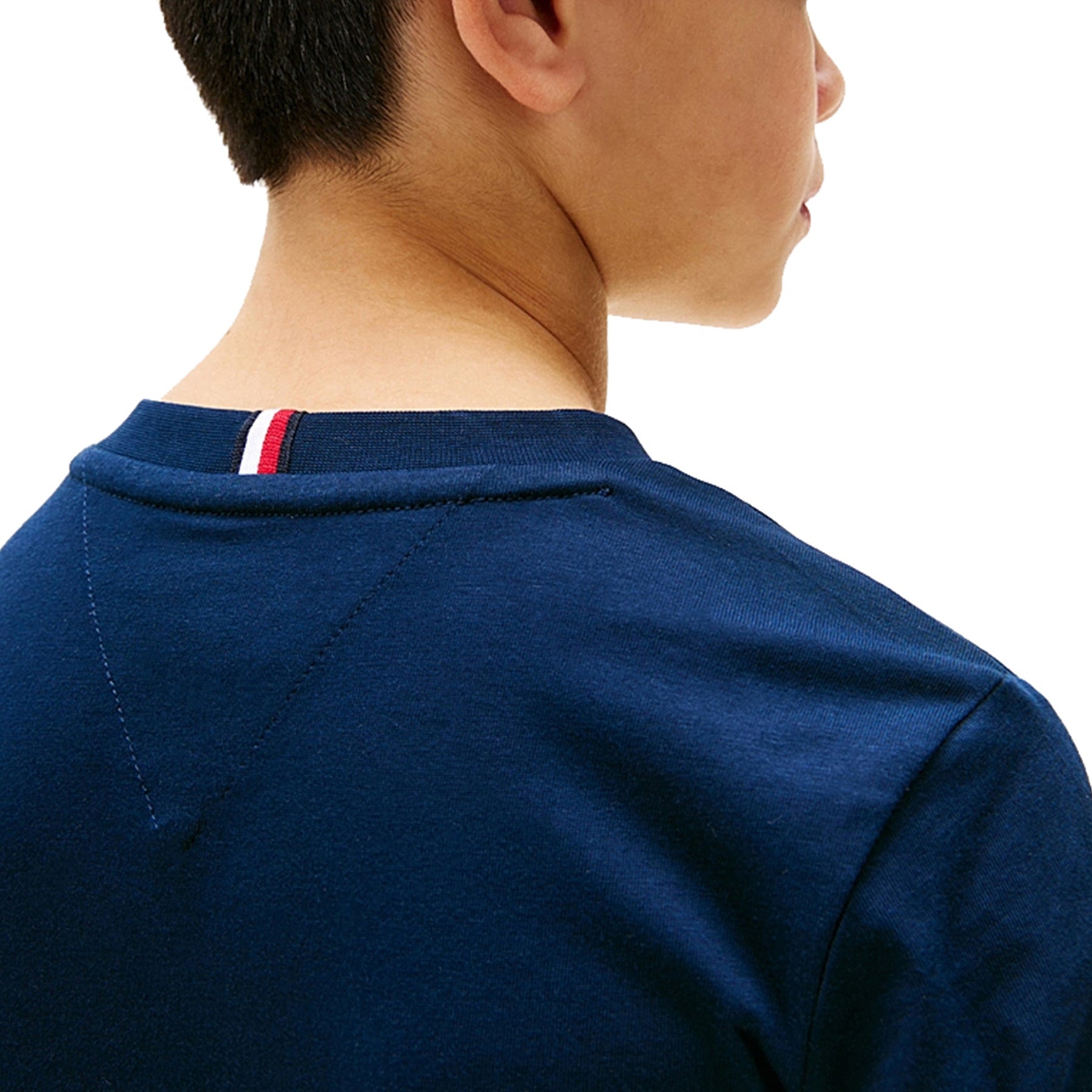 Aggiungi un tocco di personalità al guardaroba del tuo bambino con la nostra T-shirt Bambino Bicolor Navy/Bianco firmata Tommy Hilfiger! Realizzata con un morbido girocollo e maniche corte, offre comfort tutto il giorno. Il motivo color block bicolor navy e bianco aggiunge un tocco di originalità, mentre il nastro iconico sul retro del collo e il logo sul petto mostrano il tuo amore per il brand.