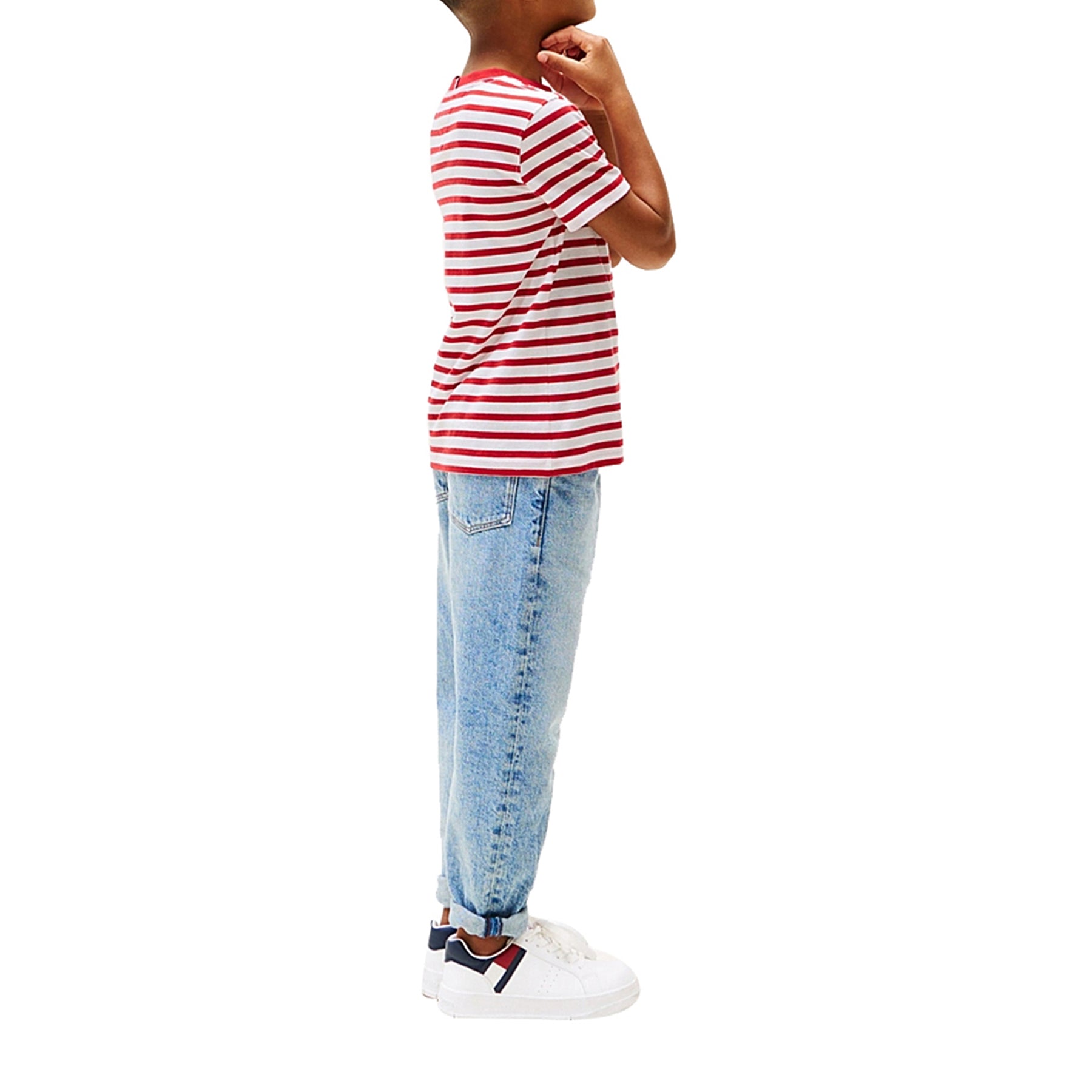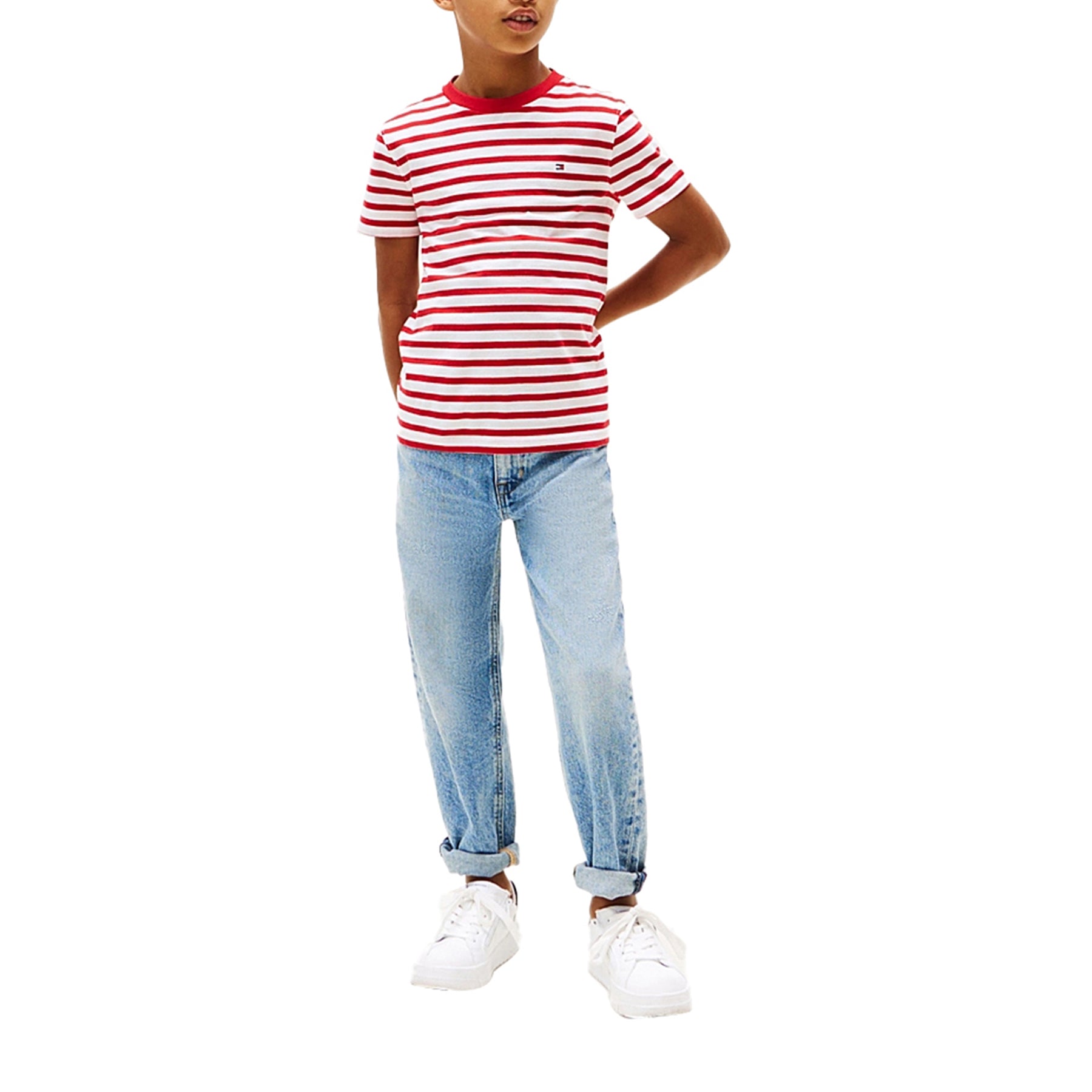 Aggiungi stile e raffinatezza al guardaroba del tuo bambino con la T-shirt a righe firmata Tommy Hilfiger! In puro cotone, questa maglietta a vestibilità regular fit esalta il suo look casual, mostrando il suo spirito autentico grazie alla bandierina ricamata. Un must-have per il suo guardaroba!