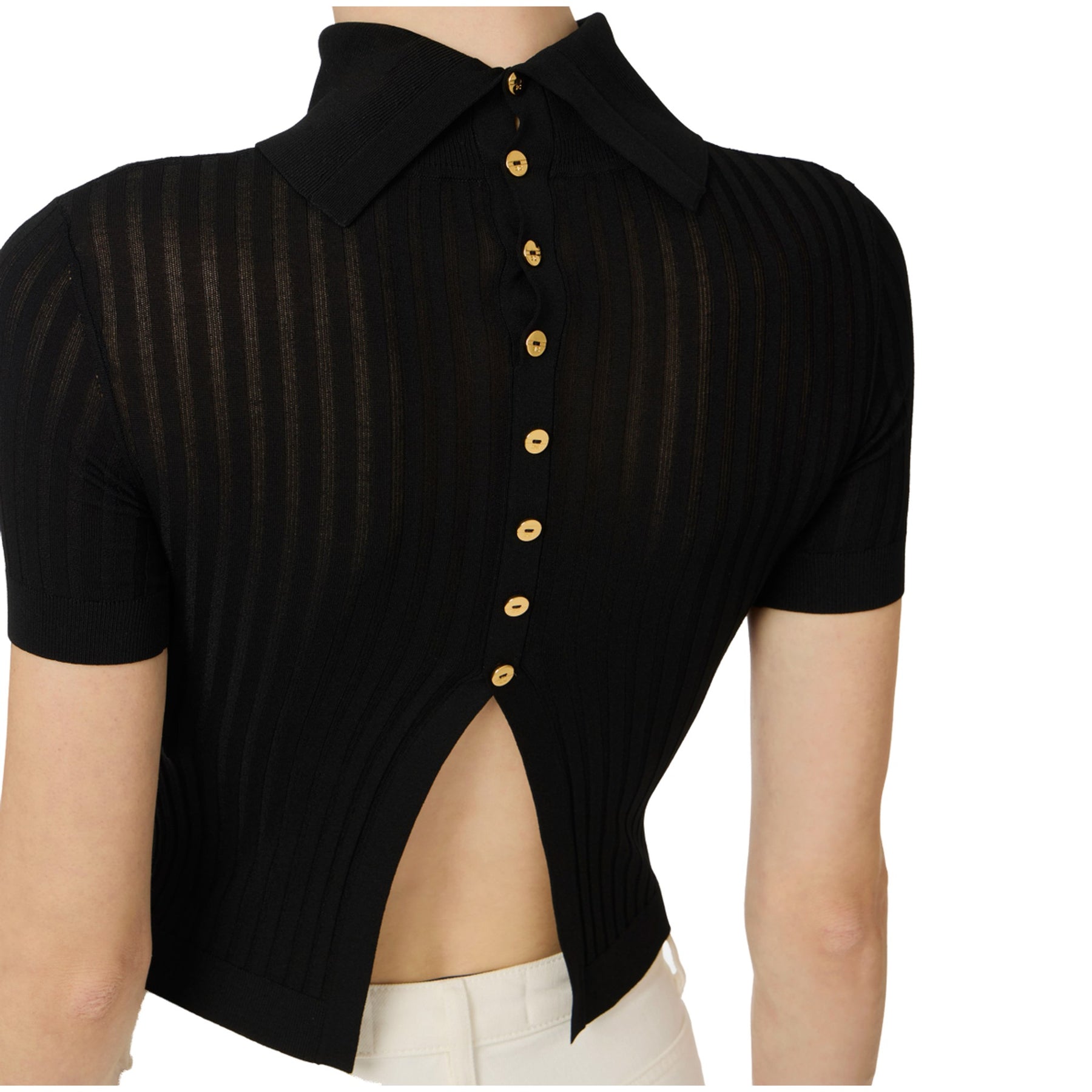 Top Donna in maglia con trasparenze Nero dettaglio retro