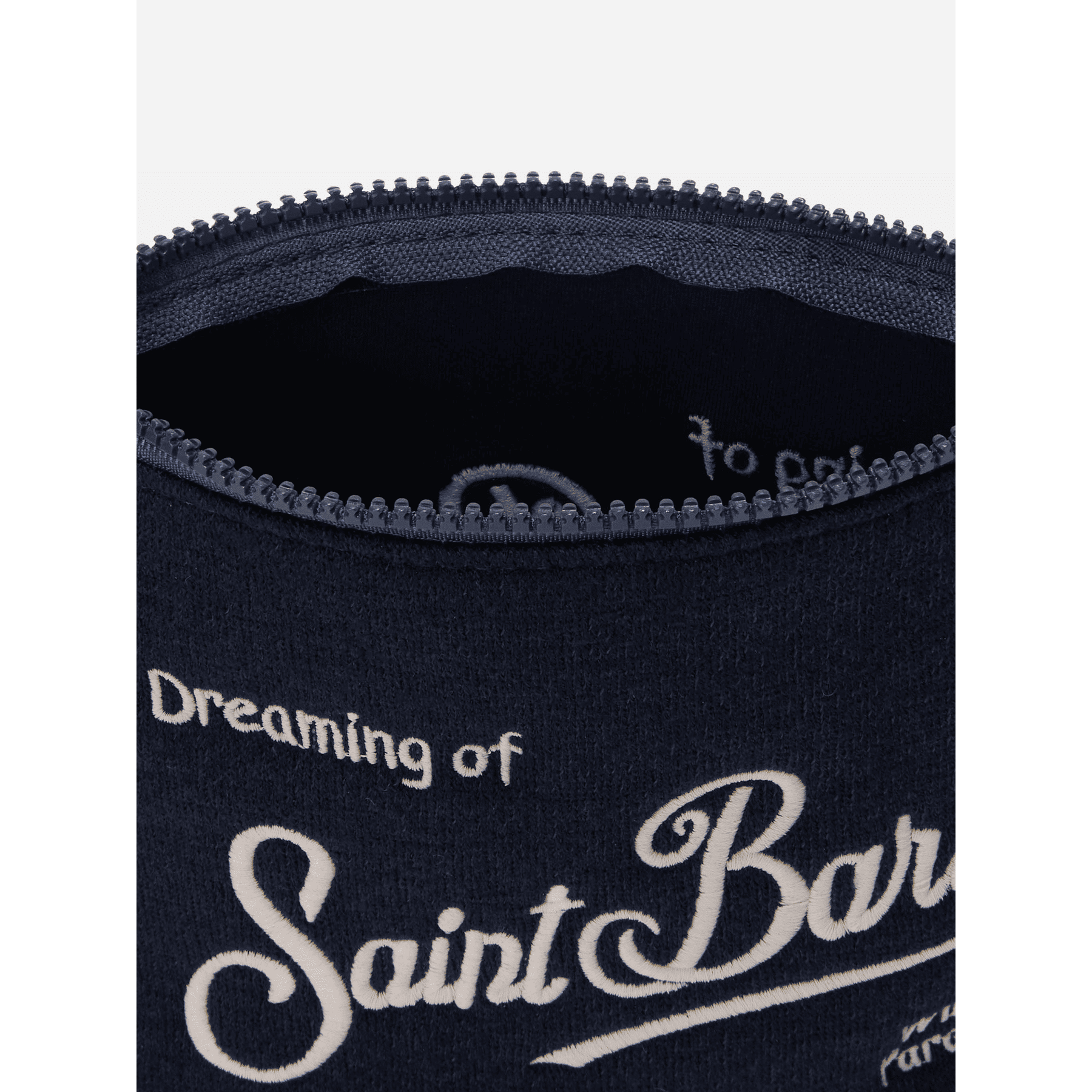 Minimal e contemporanea: la versione in lana blu per ogni occasione. Pochette in tessuto scuba e misto lana Tinta unita blu Passante per polso in gros-grain Logo ricamato Dimensioni: 21 x 15,5 x 7 cm