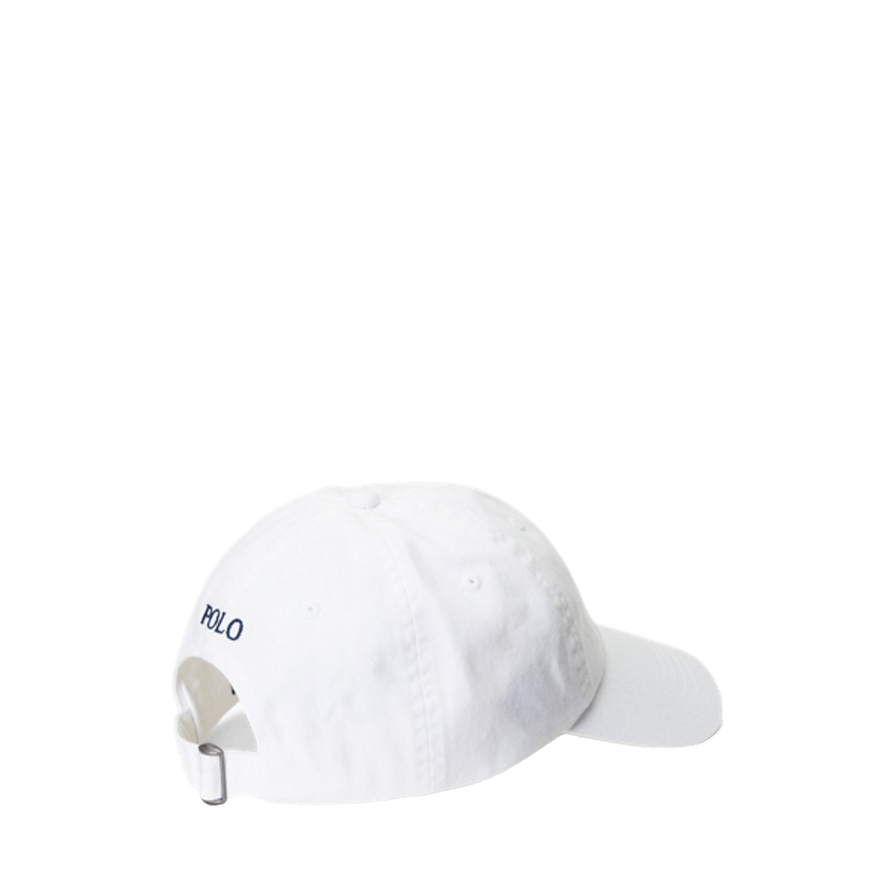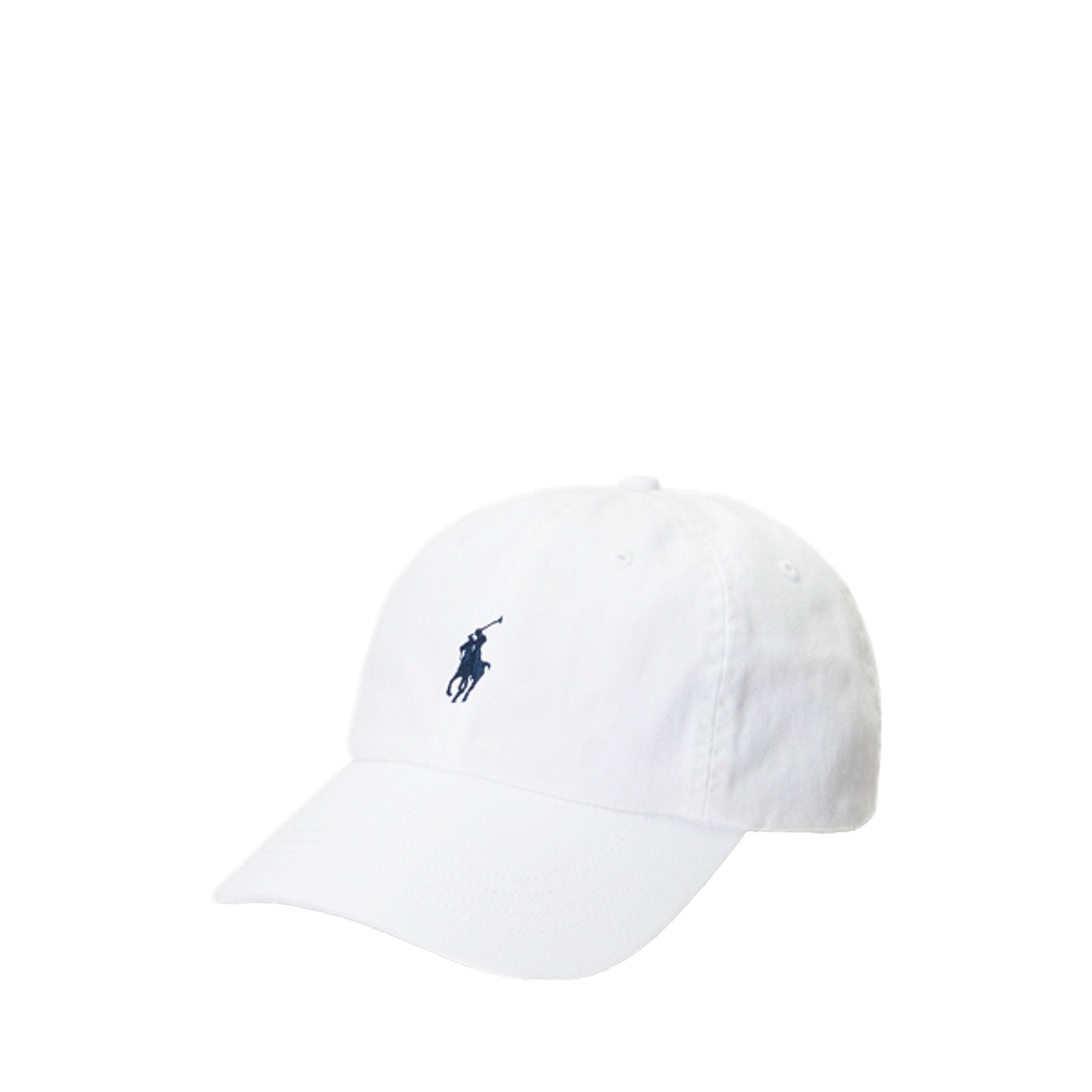 Cappellino da baseball da uomo in chino color bianco, dallo stile pulito ed elegante, firmato Polo Ralph Lauren. Caratterizzato da un design classico a sei pannelli con visiera cucita, presenta occhielli di aerazione ricamati per una maggiore traspirabilità. La chiusura regolabile sul retro con fibbia a cursore assicura una vestibilità confortevole e personalizzata. Il pony ricamato sul davanti e la scritta Polo ricamata sul retro completano il modello con un tocco iconico e raffinato.