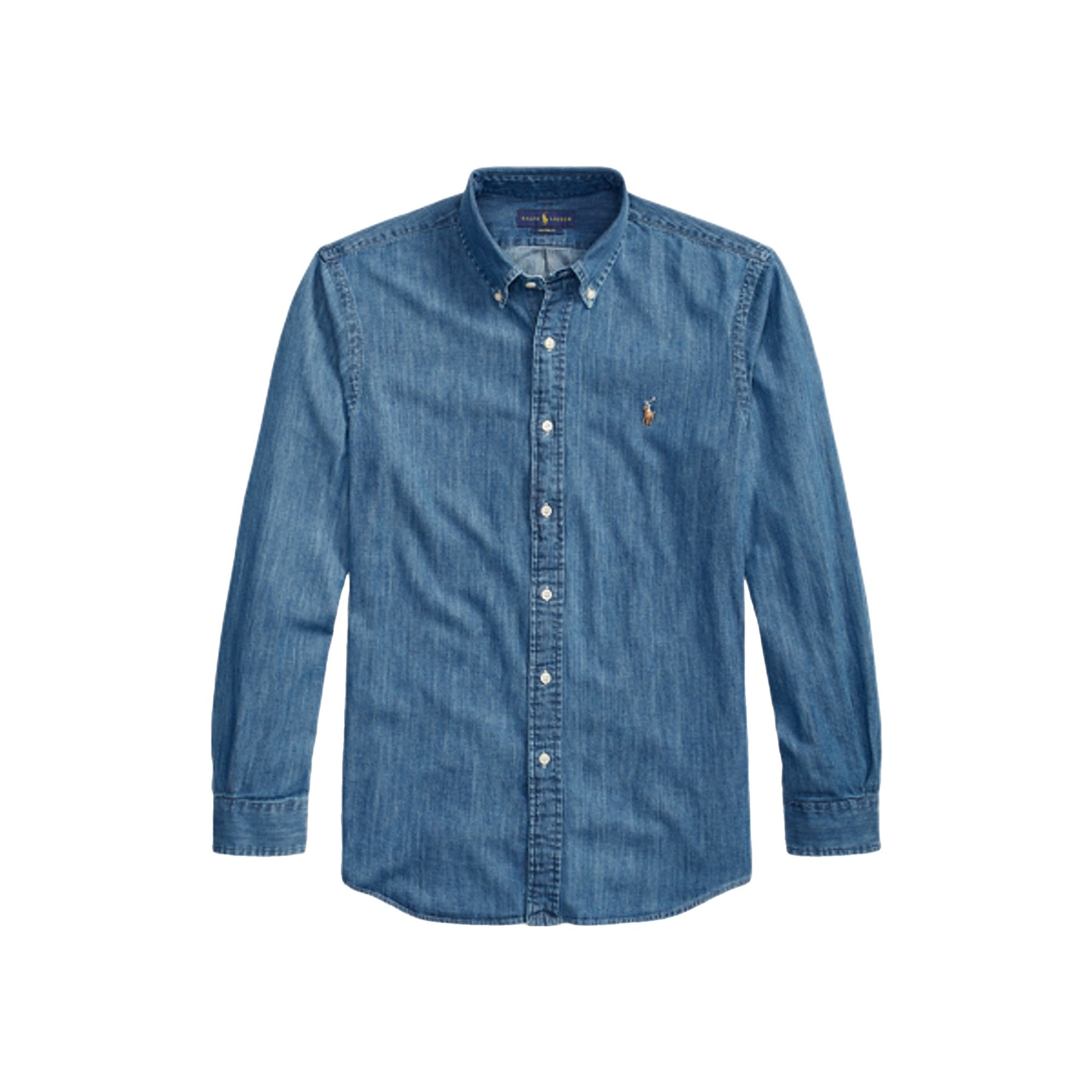Camicia da uomo in denim Custom-Fit, dal taglio equilibrato e dallo stile intramontabile, firmata Polo Ralph Lauren. Il colletto a punta con bottoni e la chiusura frontale abbottonata richiamano il classico stile Oxford, mentre le maniche lunghe con polsini abbottonati assicurano una vestibilità curata e confortevole. Il carré posteriore con piega a cannoncino favorisce libertà di movimento. Il pony ricamato sul lato sinistro del petto completa il capo con l’iconico dettaglio distintivo del brand.