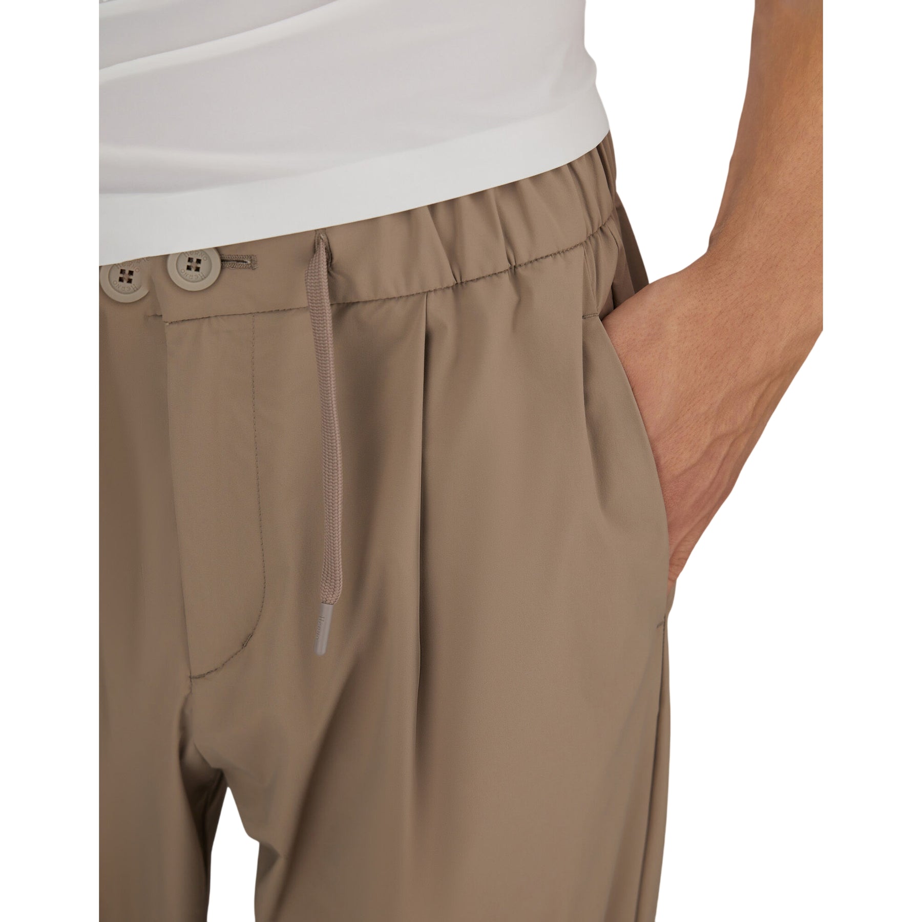 Scopri il comfort senza sacrificare lo stile con questi pantaloni uomo tortora in nylon stretch ultraleggero. La trama traspirante ti mantiene fresco e asciutto tutto il giorno, mentre il design classico con vita elasticizzata e coulisse si adatta naturalmente a ogni movimento. Pinces eleganti, tasche pratiche e la firma Herno completano un capo versatile che merita un posto nel tuo guardaroba. Perfetti per chi non scende a compromessi tra funzionalità e raffinatezza.